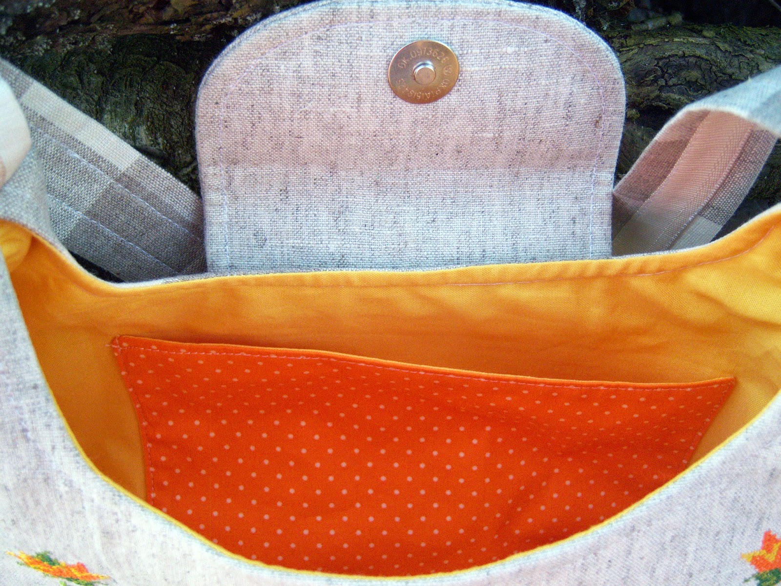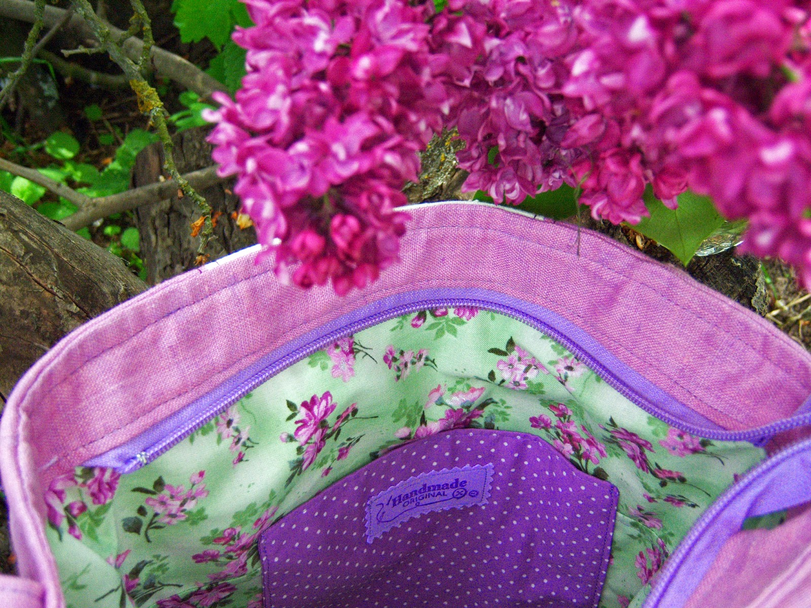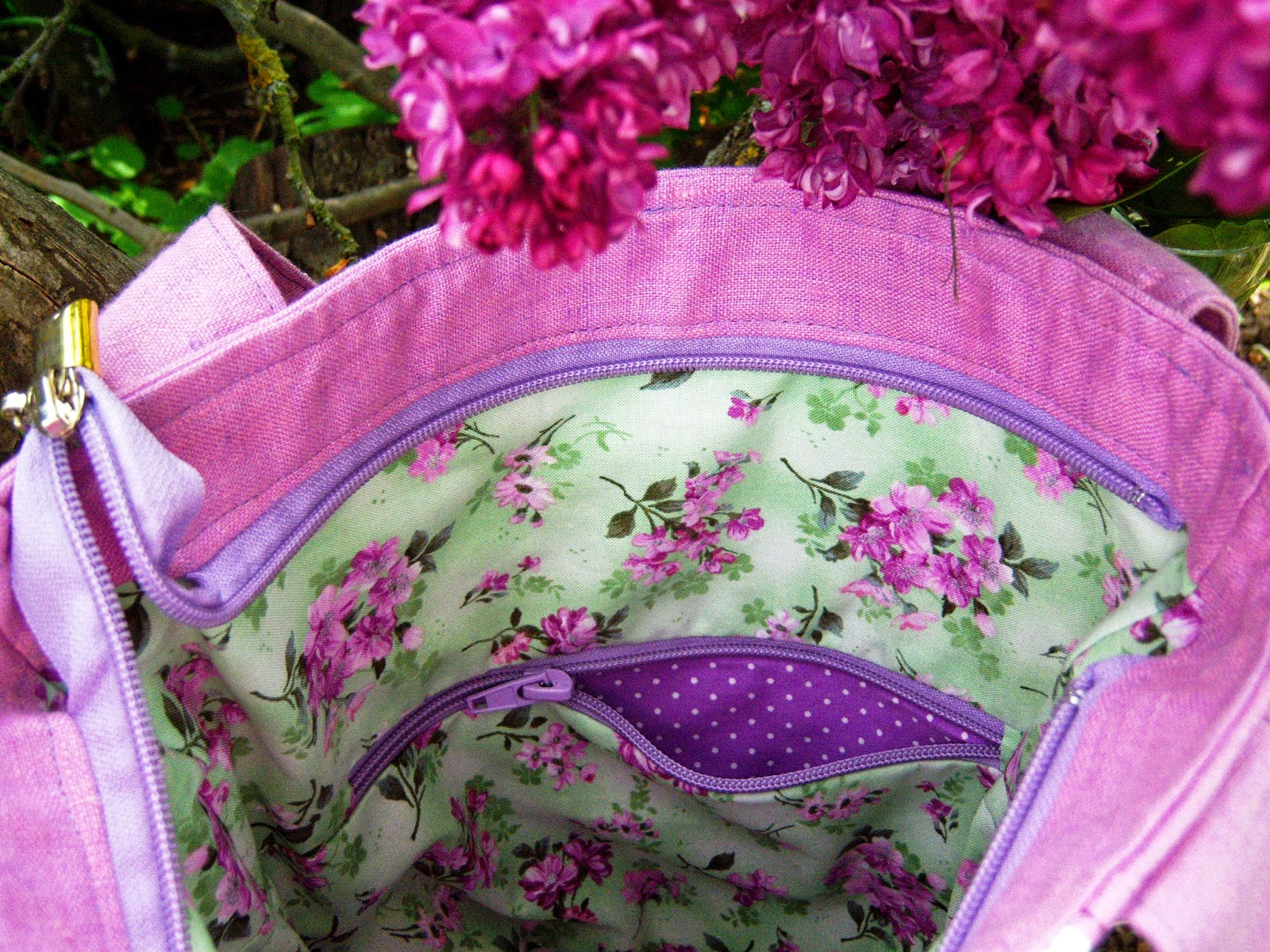 Цього разу внутрішнє наповнення сумочки мене приваблює ще більше, ніж зовнішність :-) Чудова бавовна з принтом в тон бузковому льону :-)