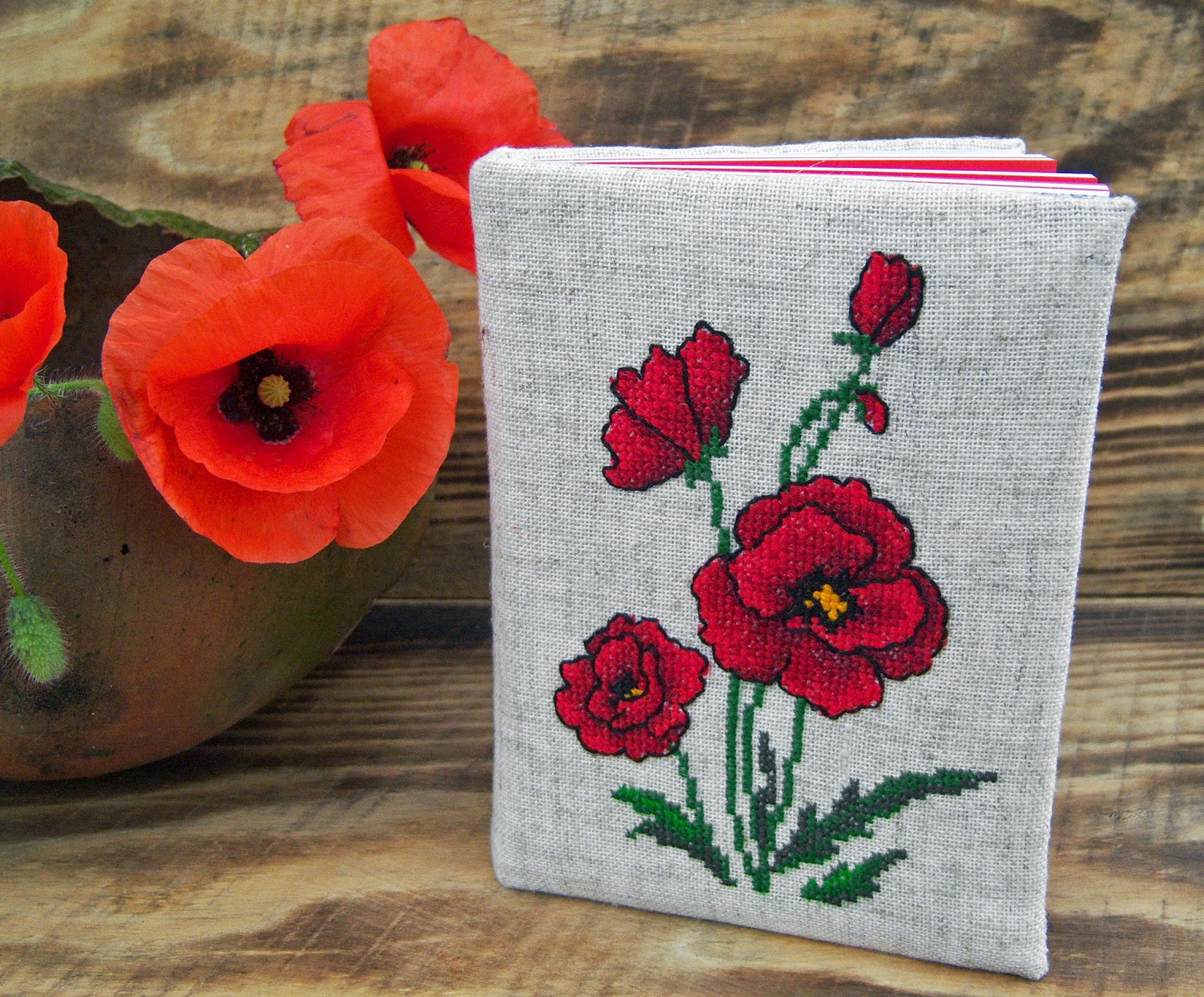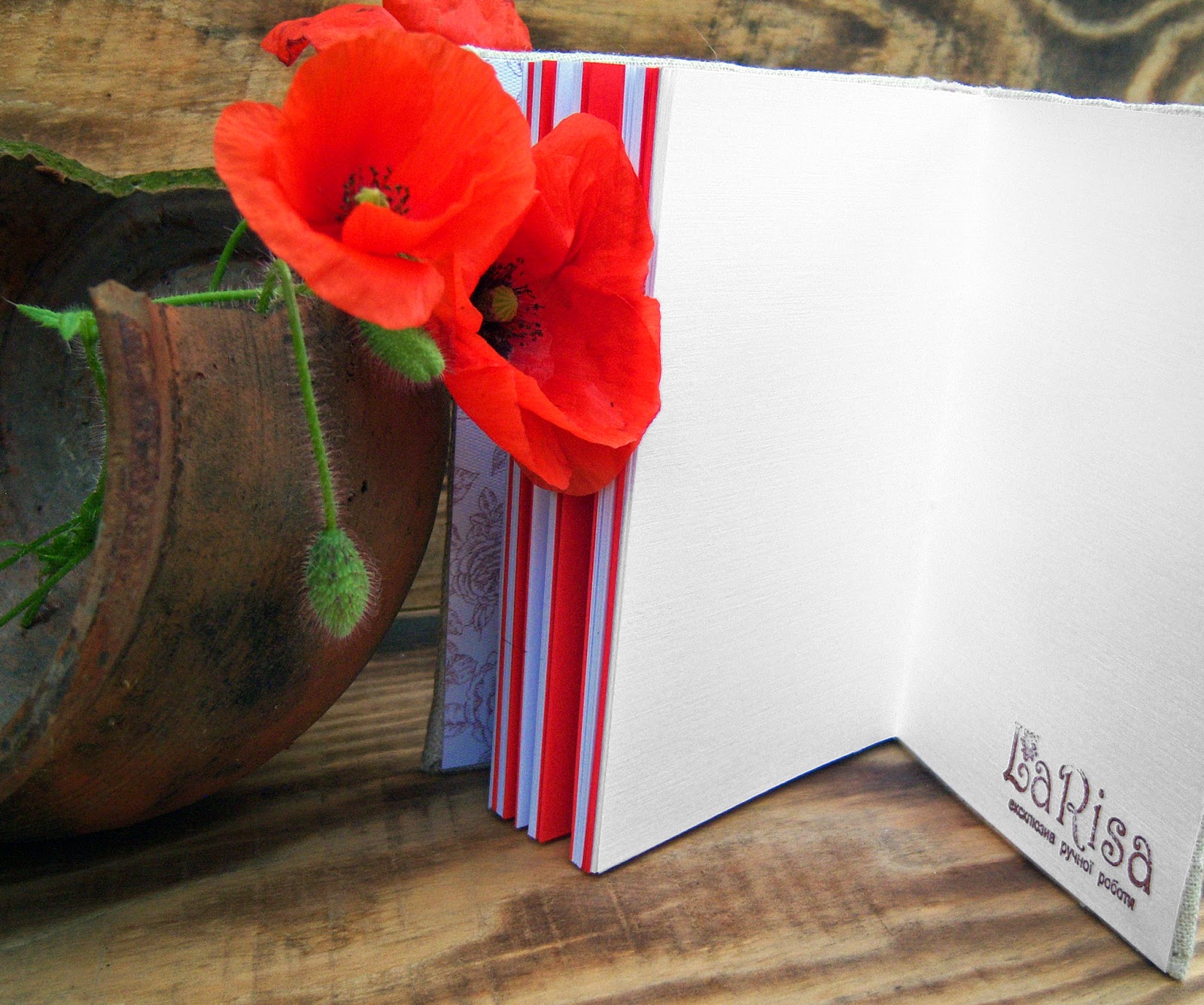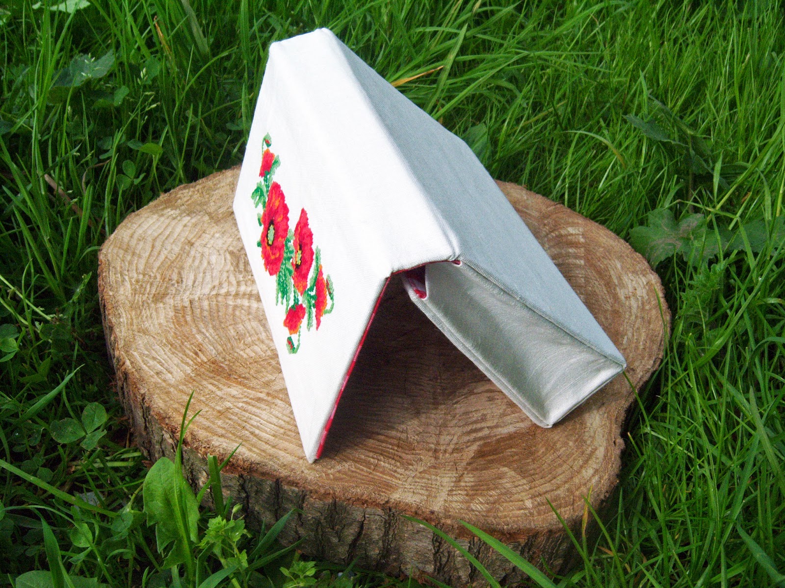 Блокнот виготовлений "з нуля". Обкладинка з палітурного картону, з синтапоновою прослойкою, обтягнута тканиною. Передній форзац квітковий, задній - чисто білий.