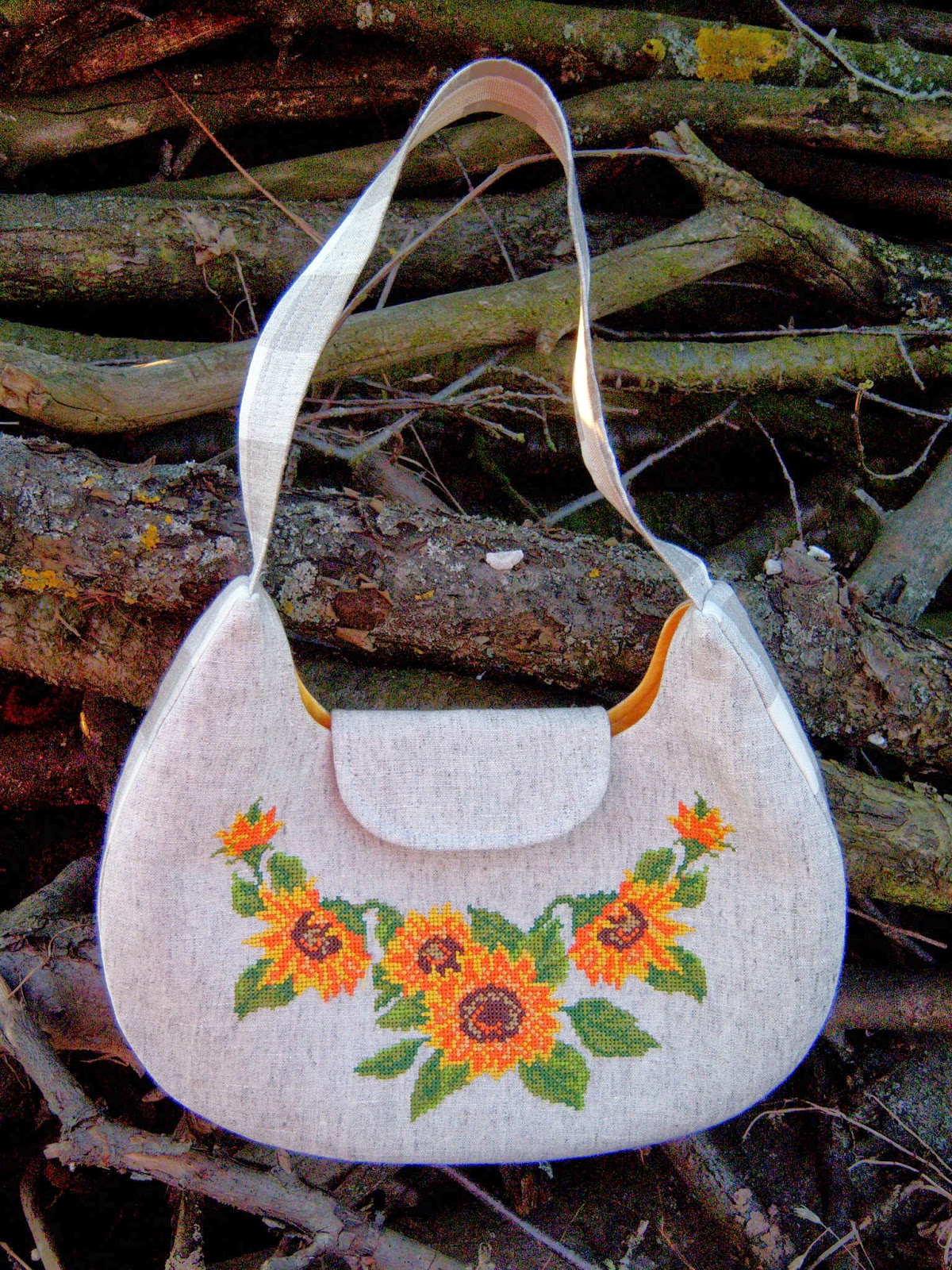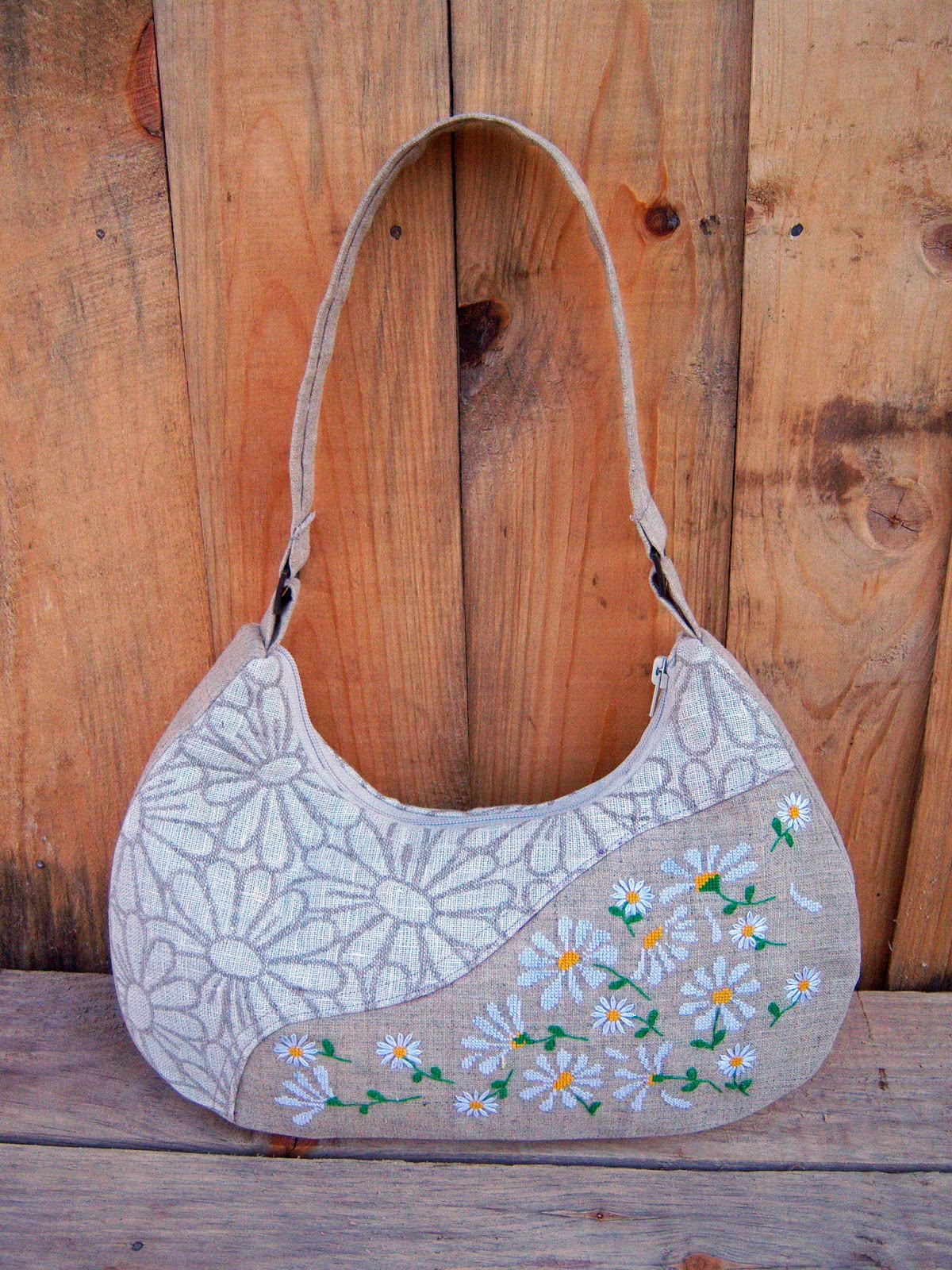 Ромашкова сумочка була осоновною частиною ПІФу для Ганни. Я довго підбирала тканину та вишивку, проте, коли натрапила на це "ромашкове полотно", одразу захотілось вишити ромашки :-) Як потім виявилось, Ганна їх дуже любить :-))
