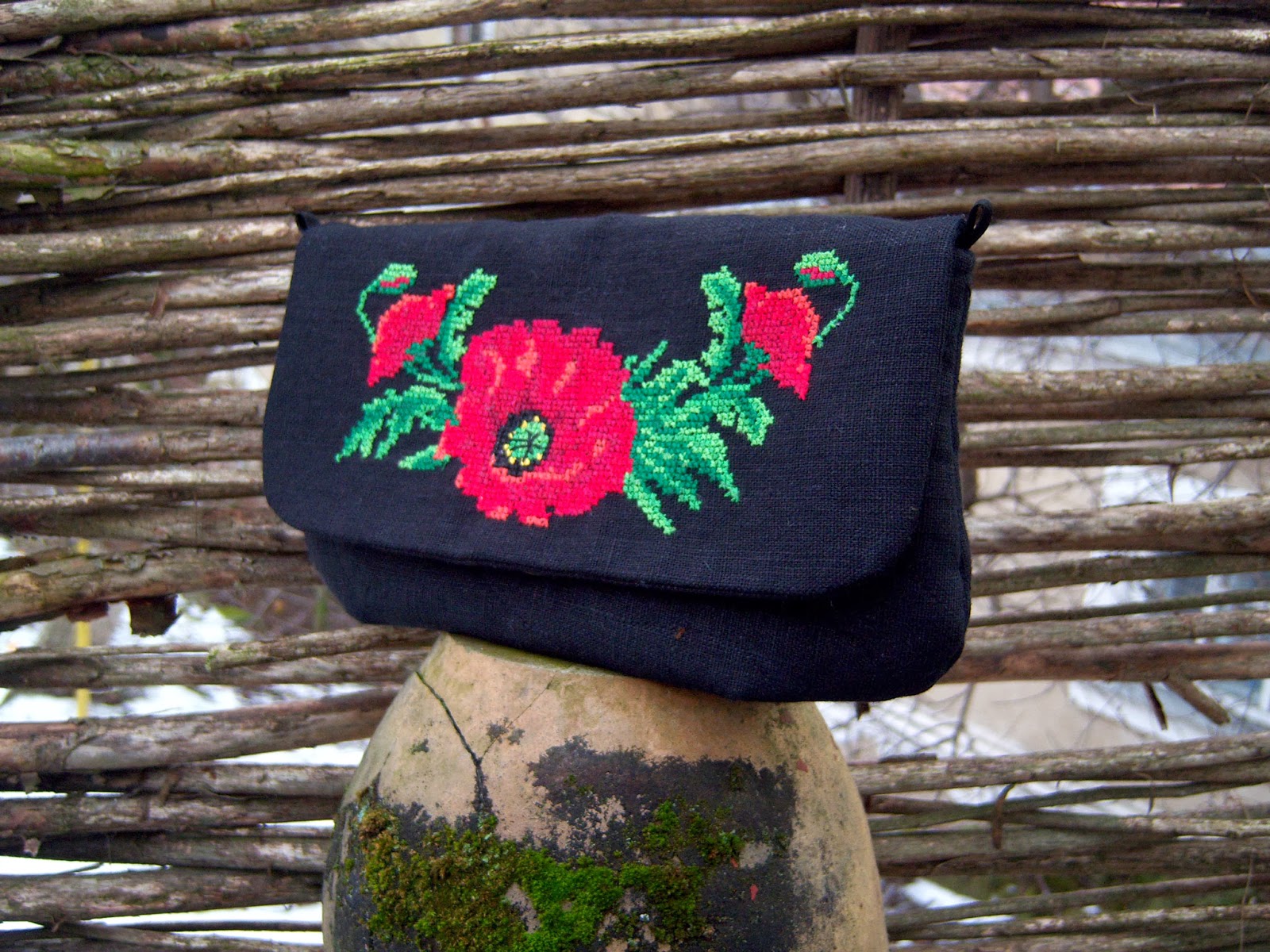 Наступний клатч - лляний з маками (під чорну вишиту сукню)