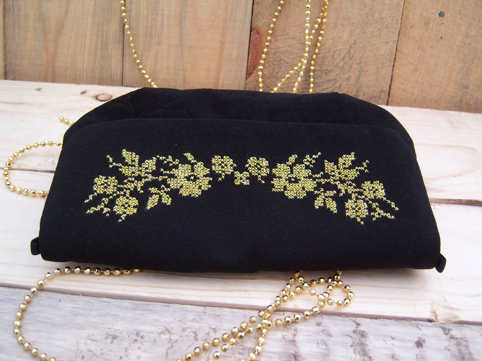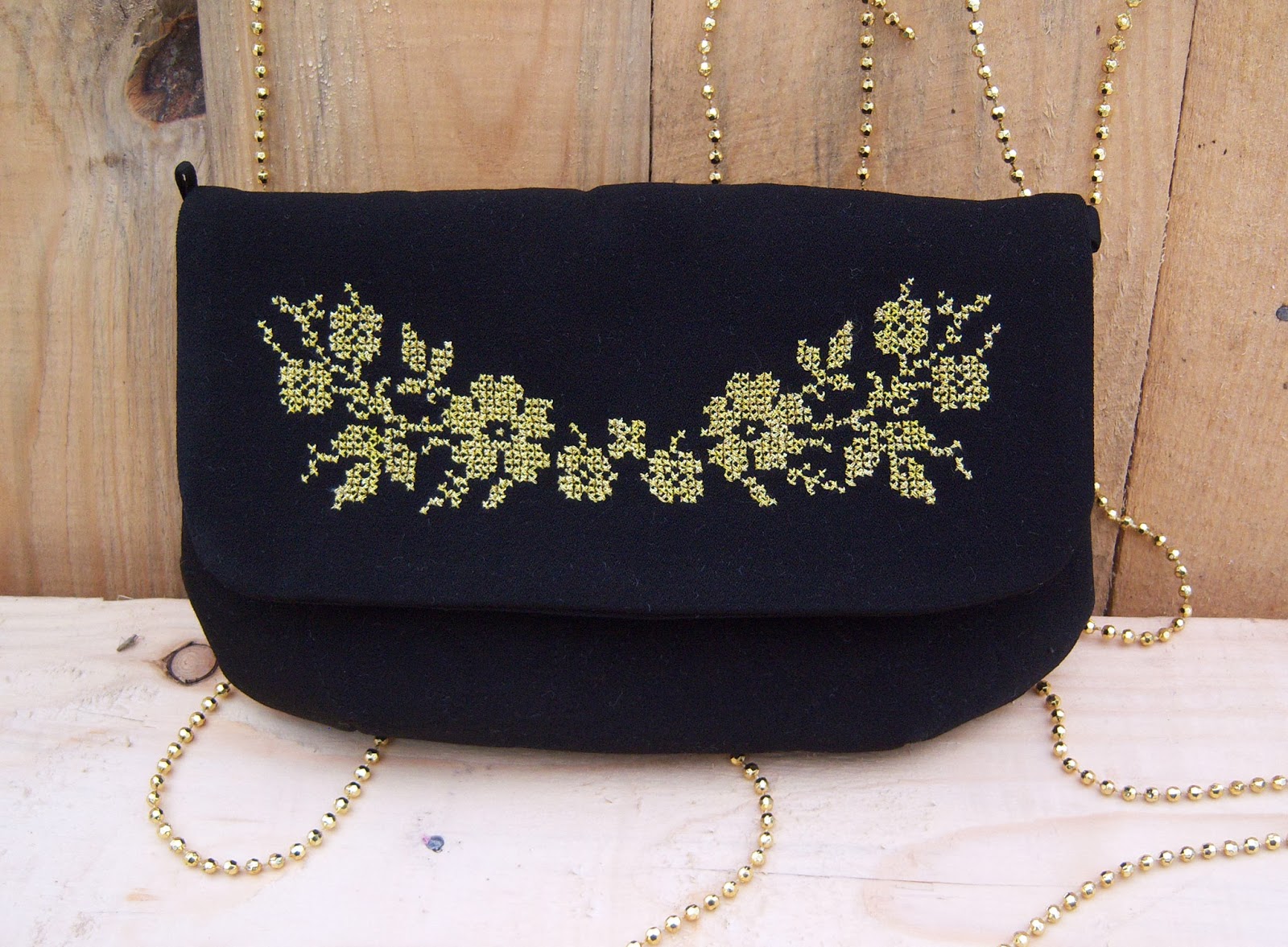 Умовою для першого, було подібність до осіннього клатчу, лише в чорному кольорі та з вишивкою золотистими нитками