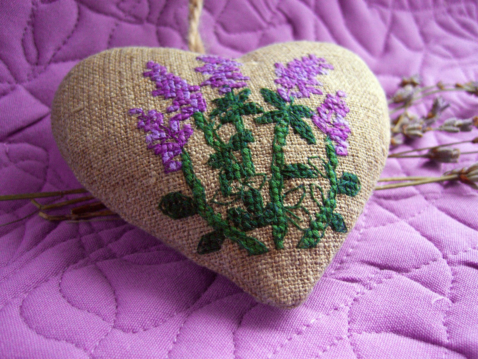 Тут все просто: лаванда ззовні, лаванда в середині :-))) Полотно, холлофайбер та лаванда для набивки, лляна петелька для підвішування.