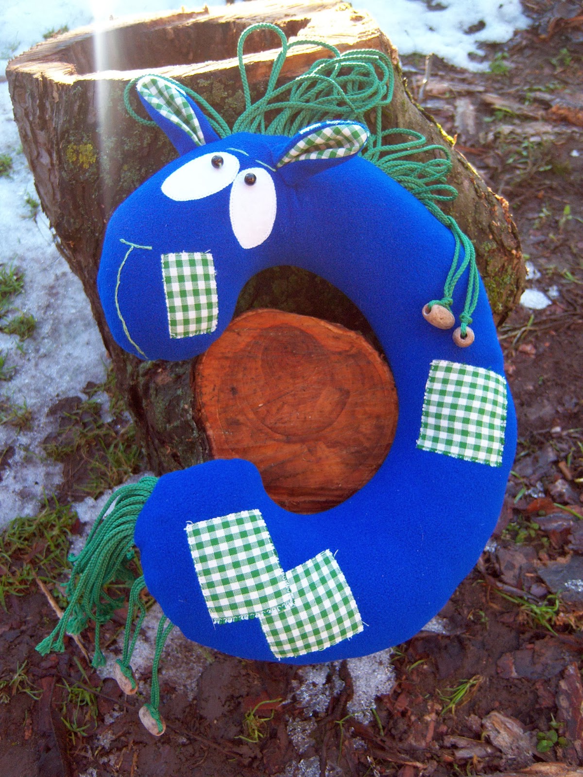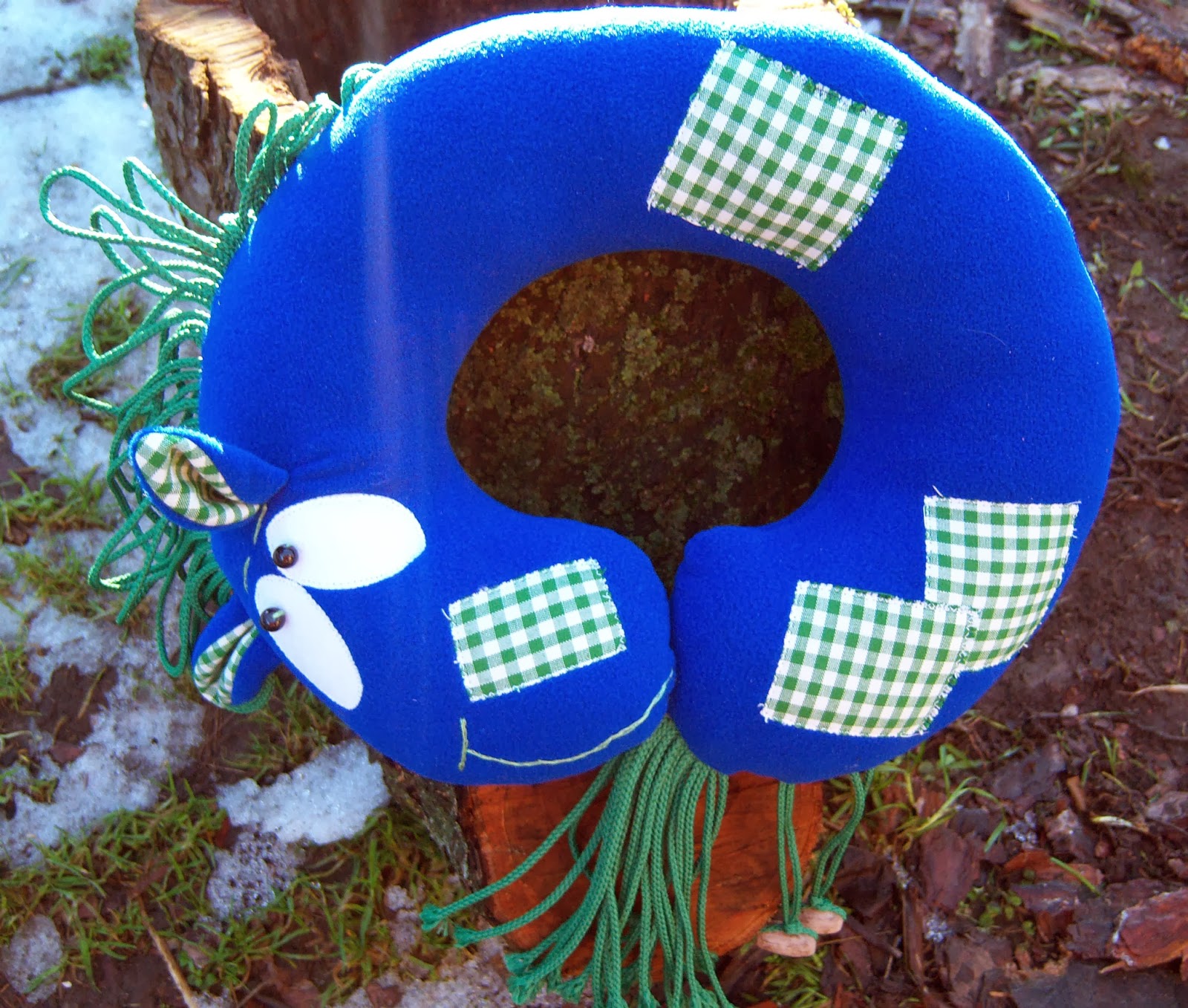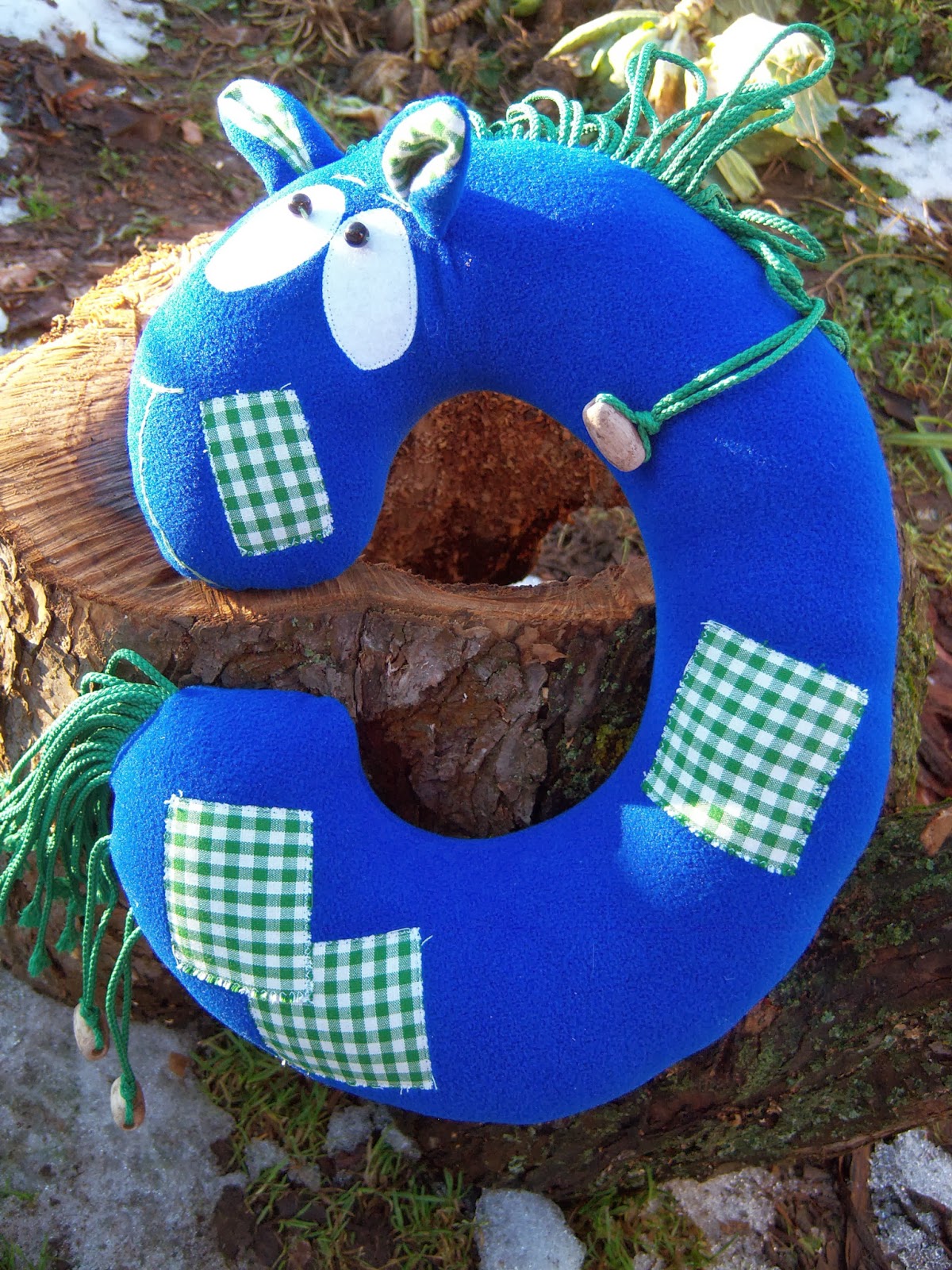Ось дві з них - подушки в дорогу. Перша - Синьо-зелена конячка (я ж обіцяла, що буде :-)).