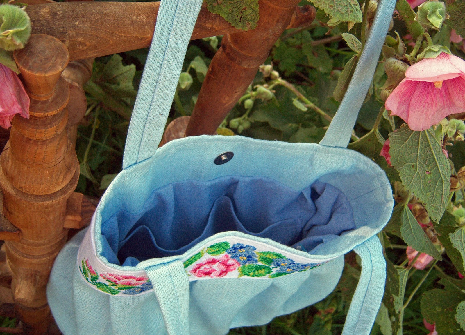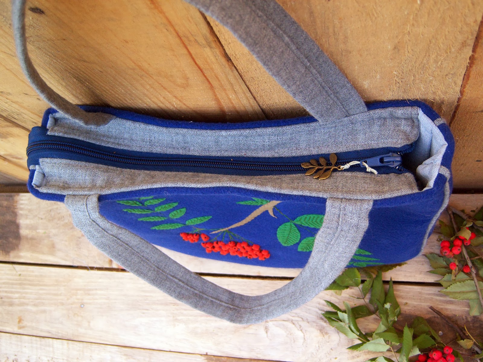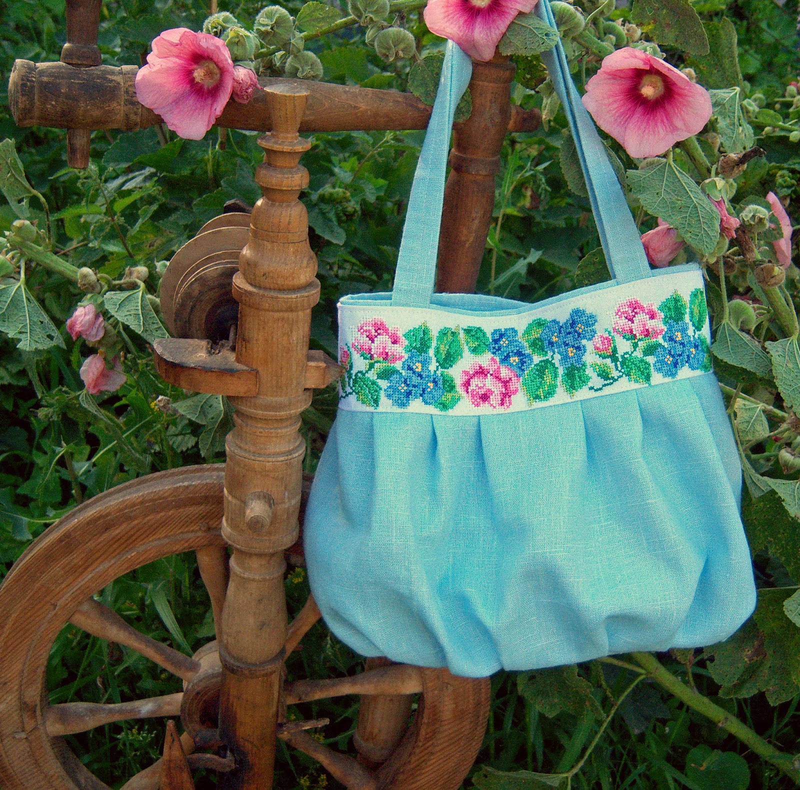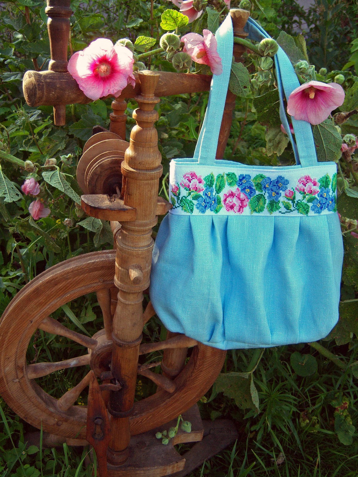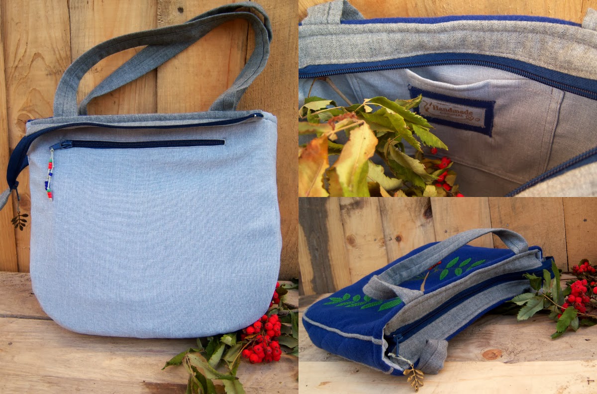 Невеличка сумочка через плече, видовженої форми. Основа - синій льон, прострочений з синтапоном, що додає рельєфності, м'якості та стійкості :-))))