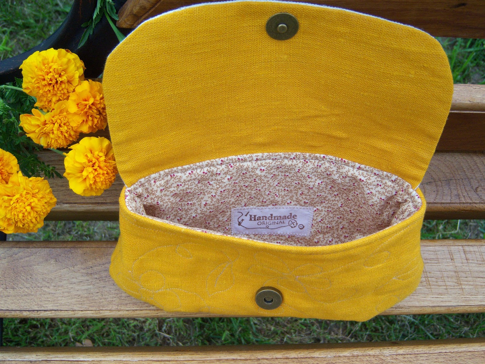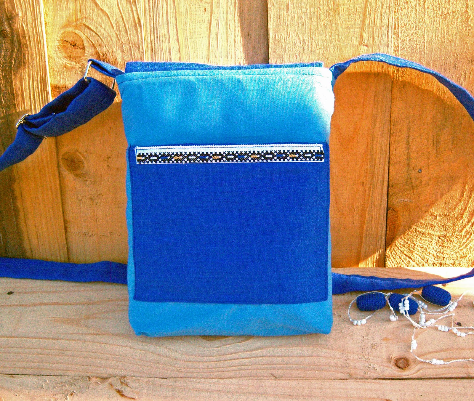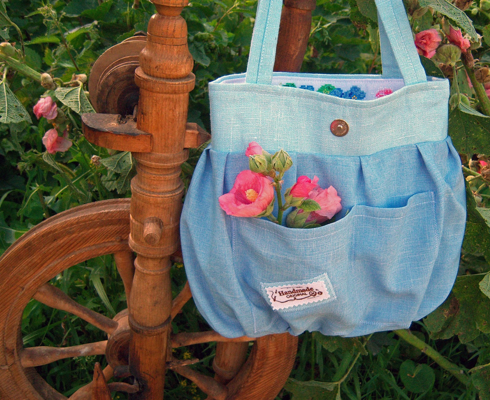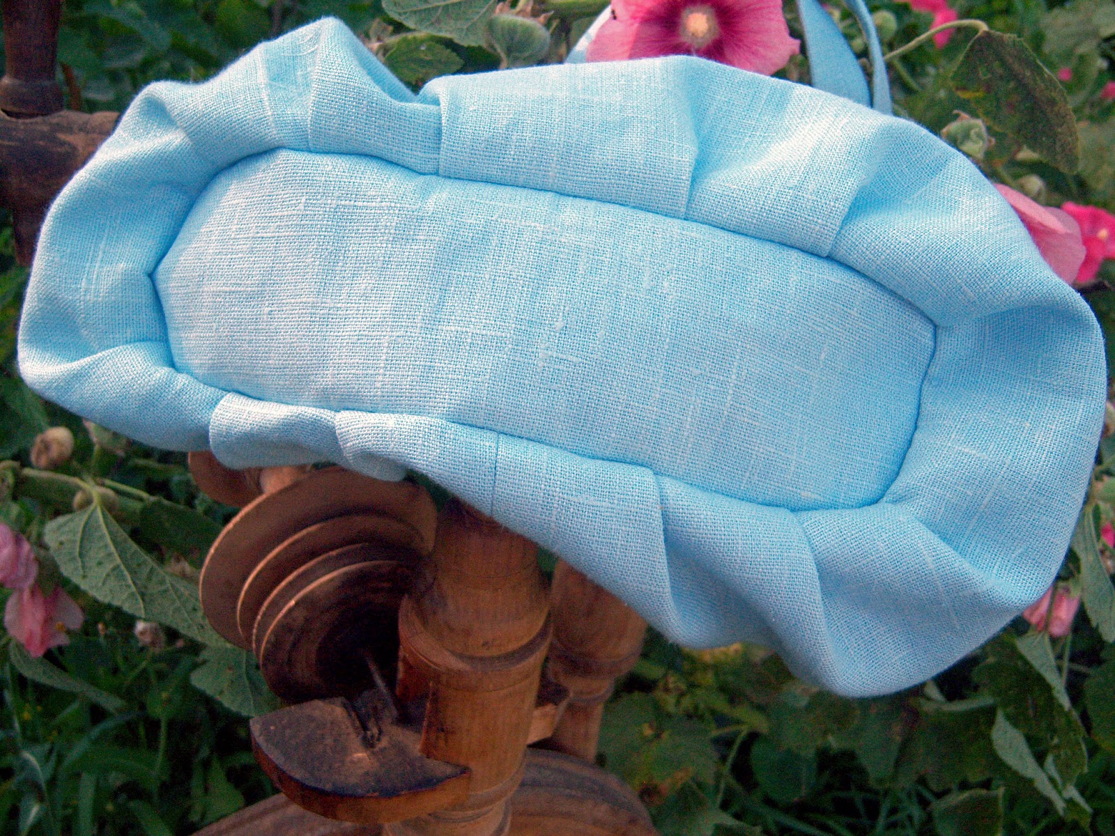Невеличка сумочка через плече, видовженої форми. Основа - синій льон, прострочений з синтапоном, що додає рельєфності, м'якості та стійкості :-))))