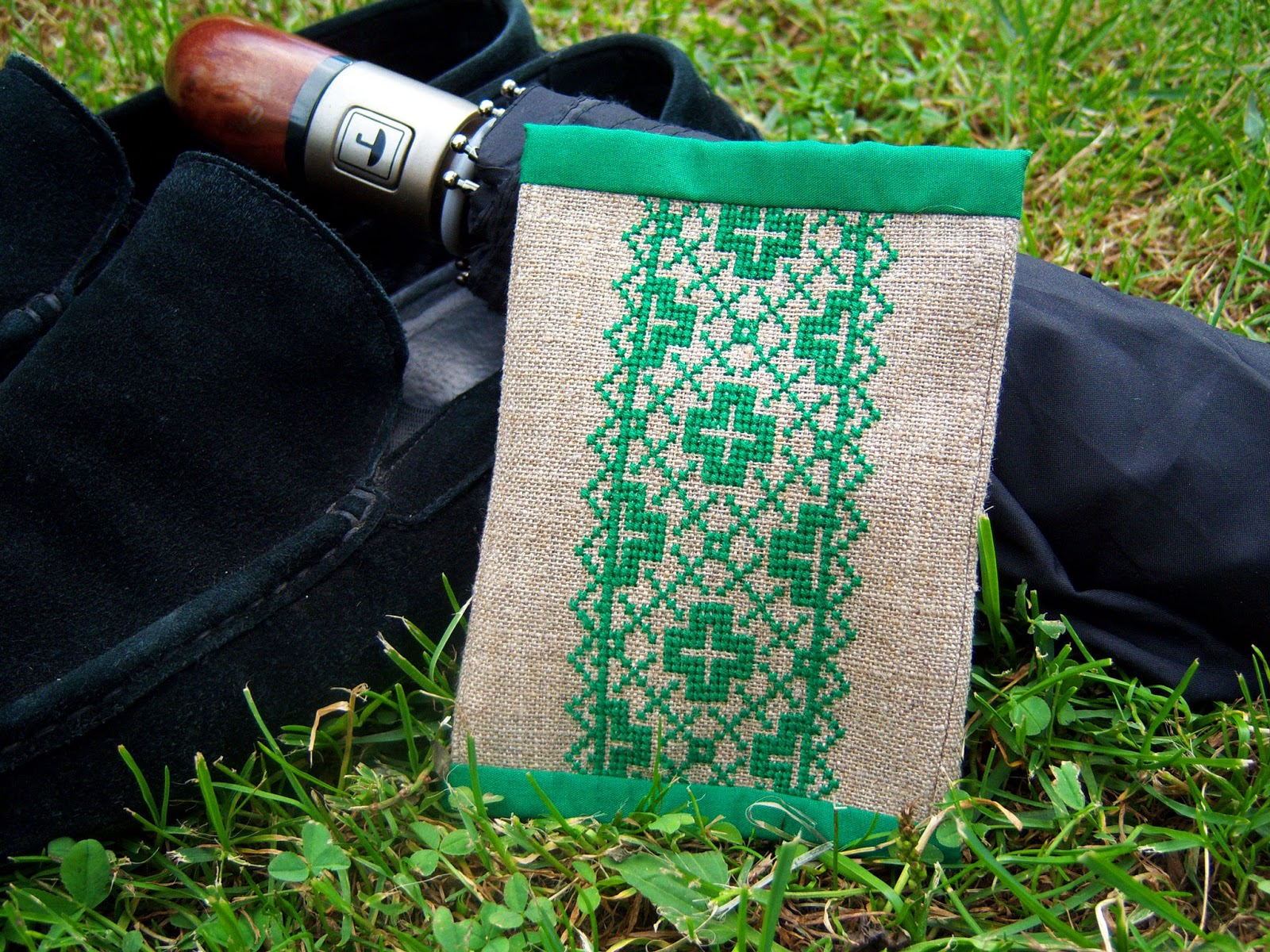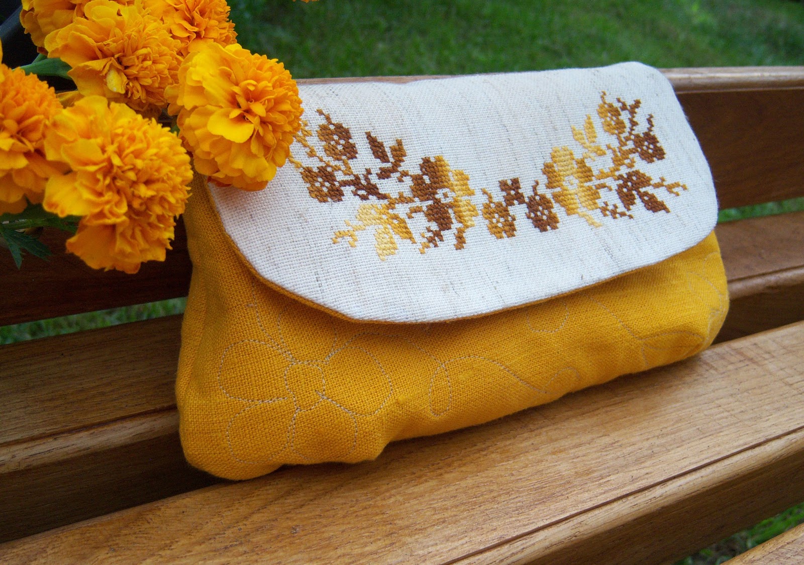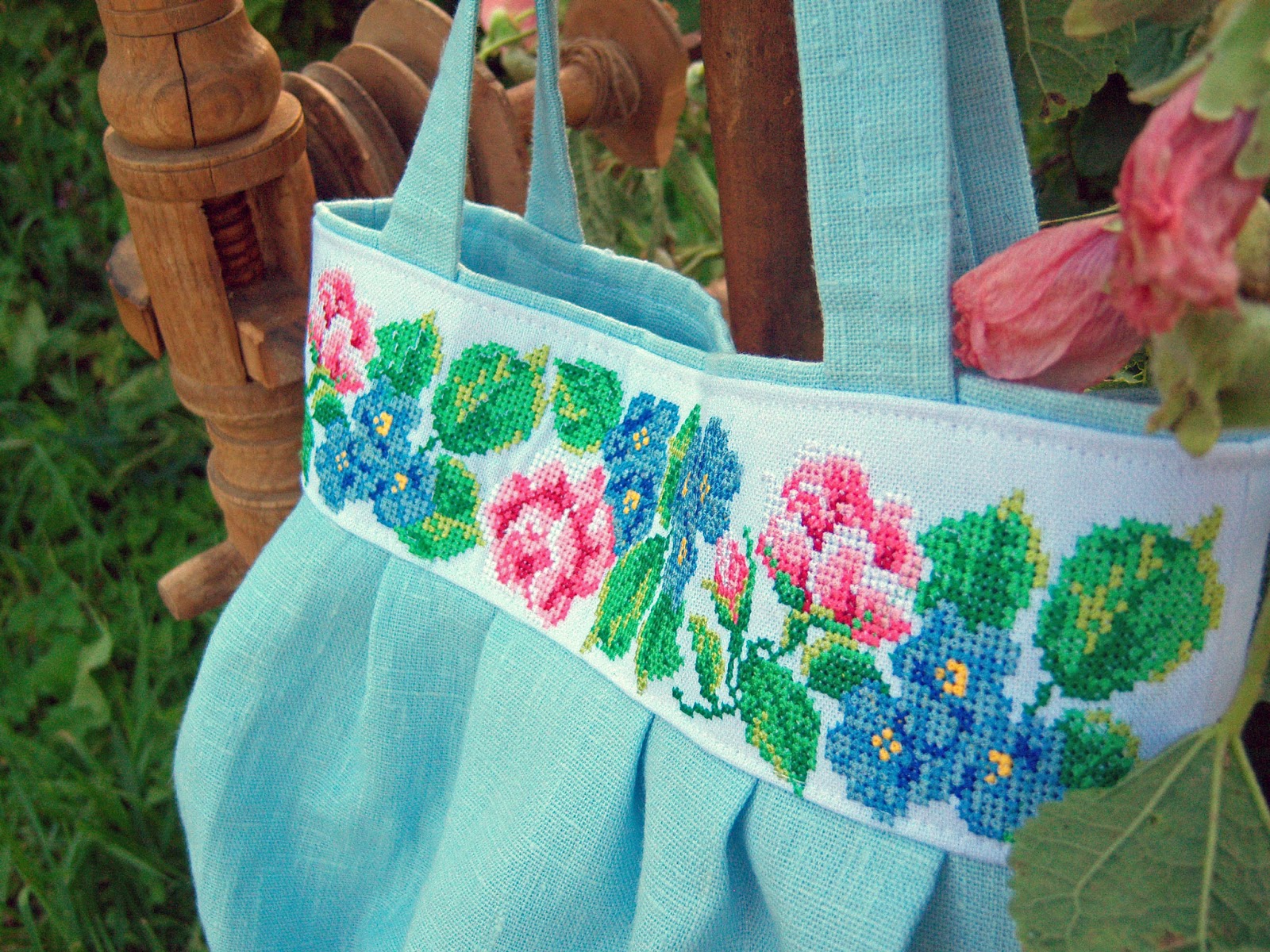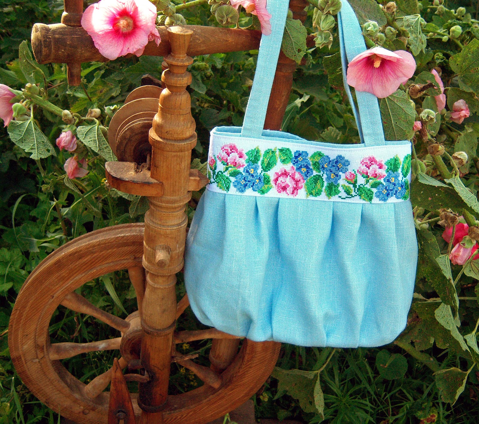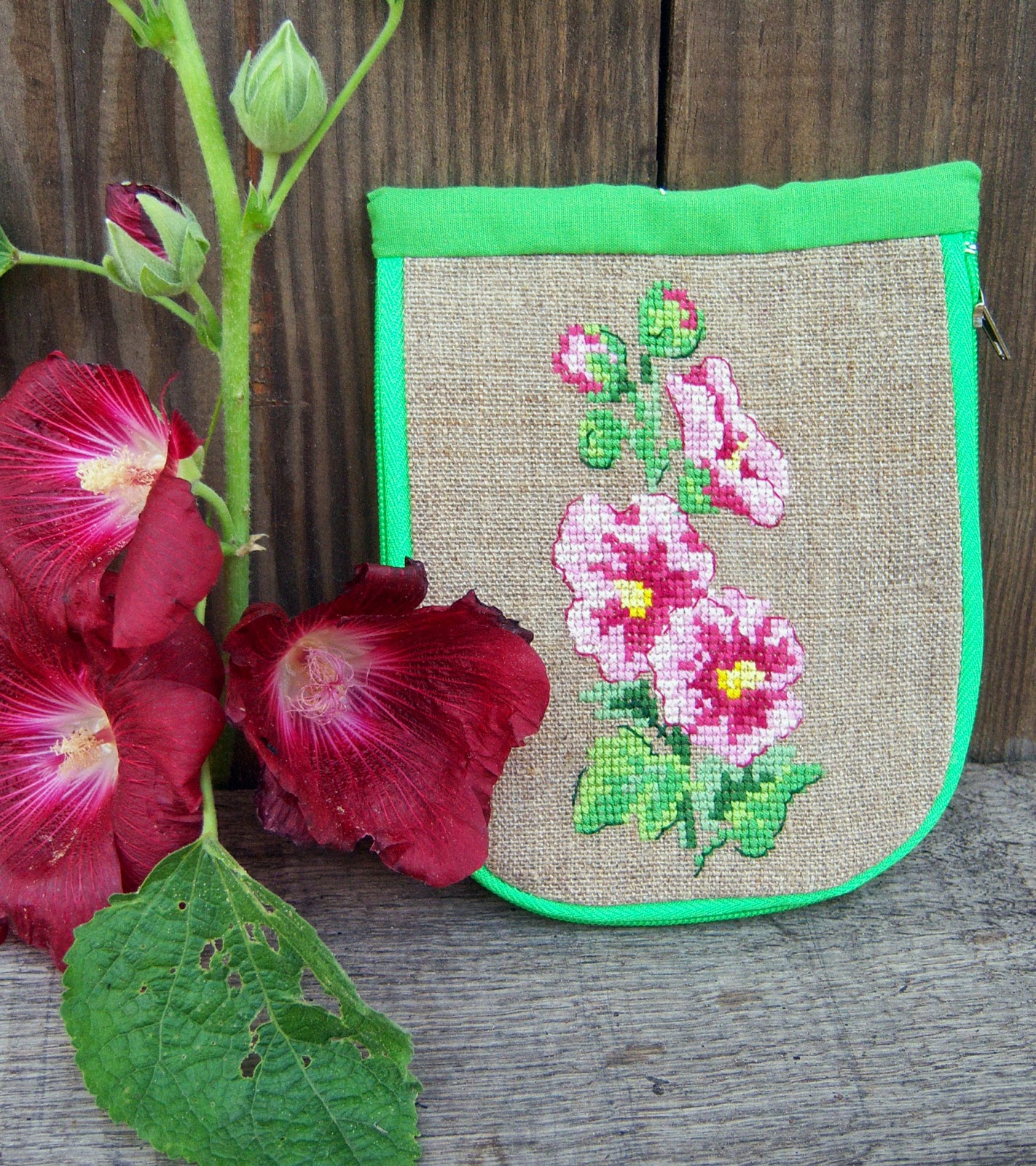 Матеріали: полотно, бавовна, замок, карабін, ручна вишивка хрестиком та гладдю