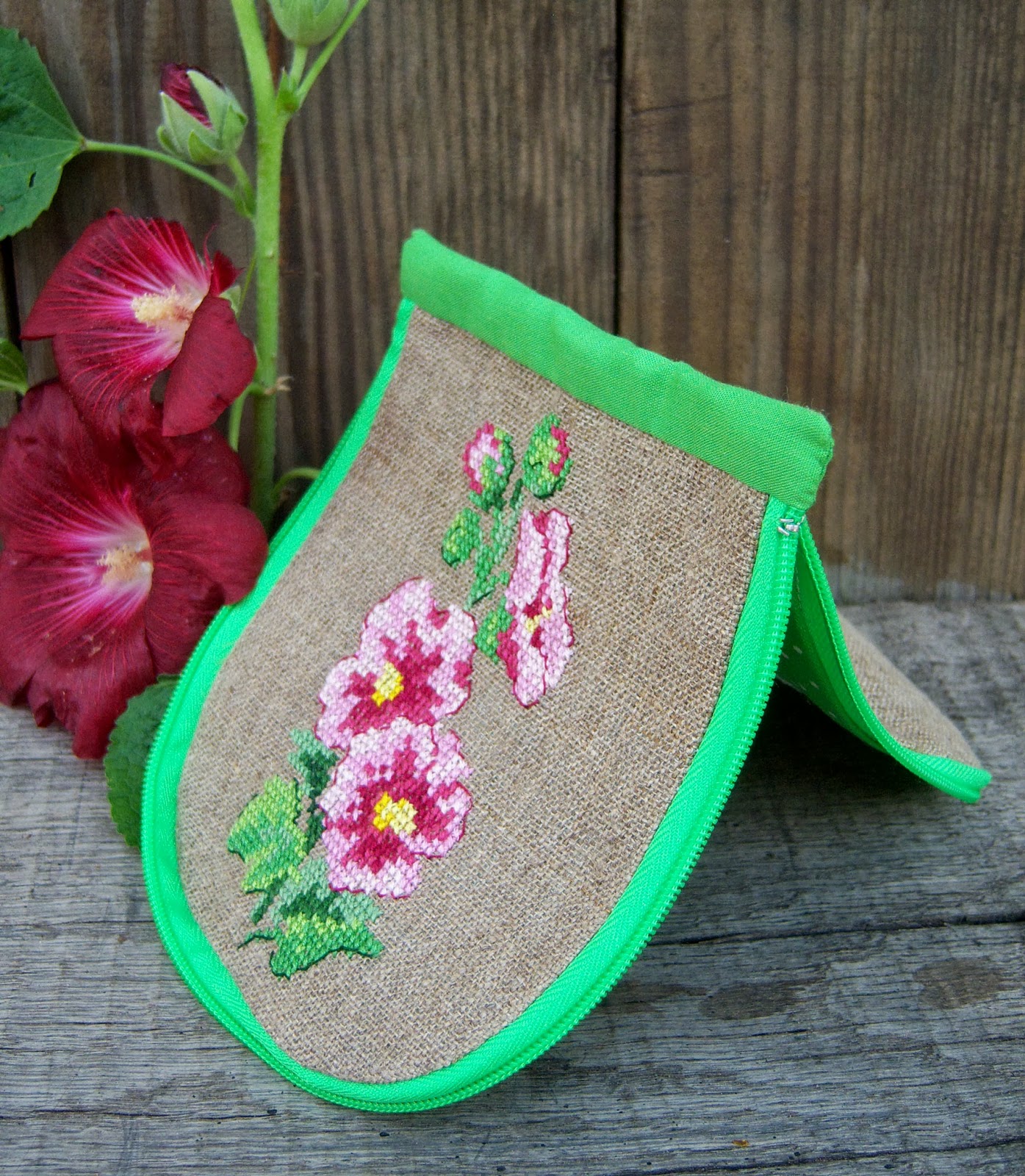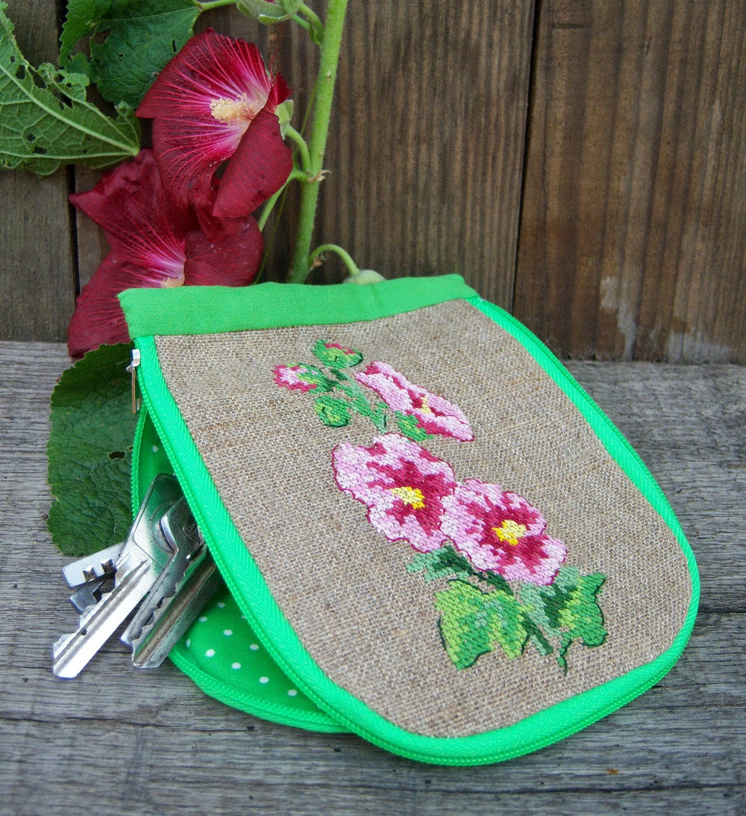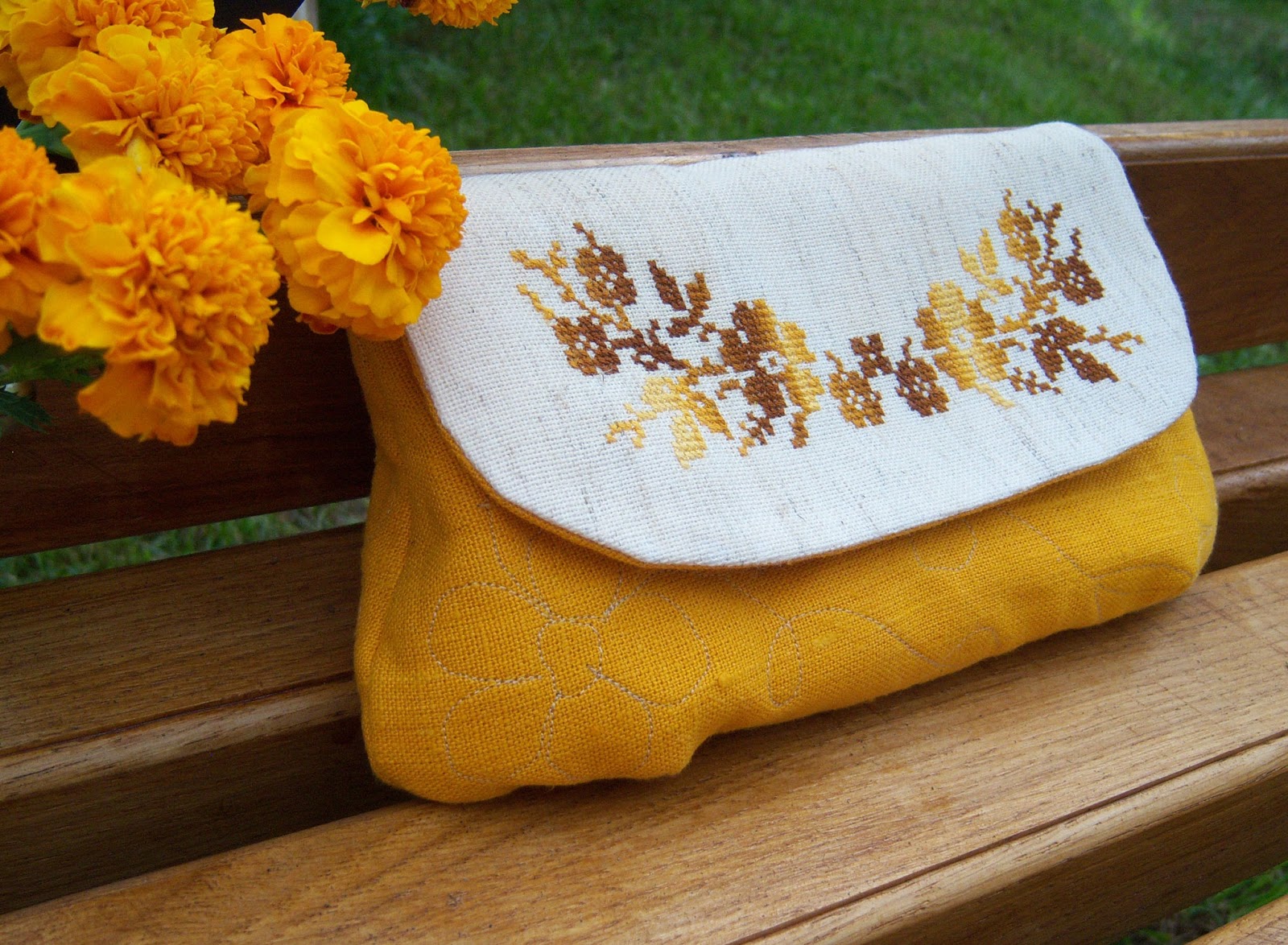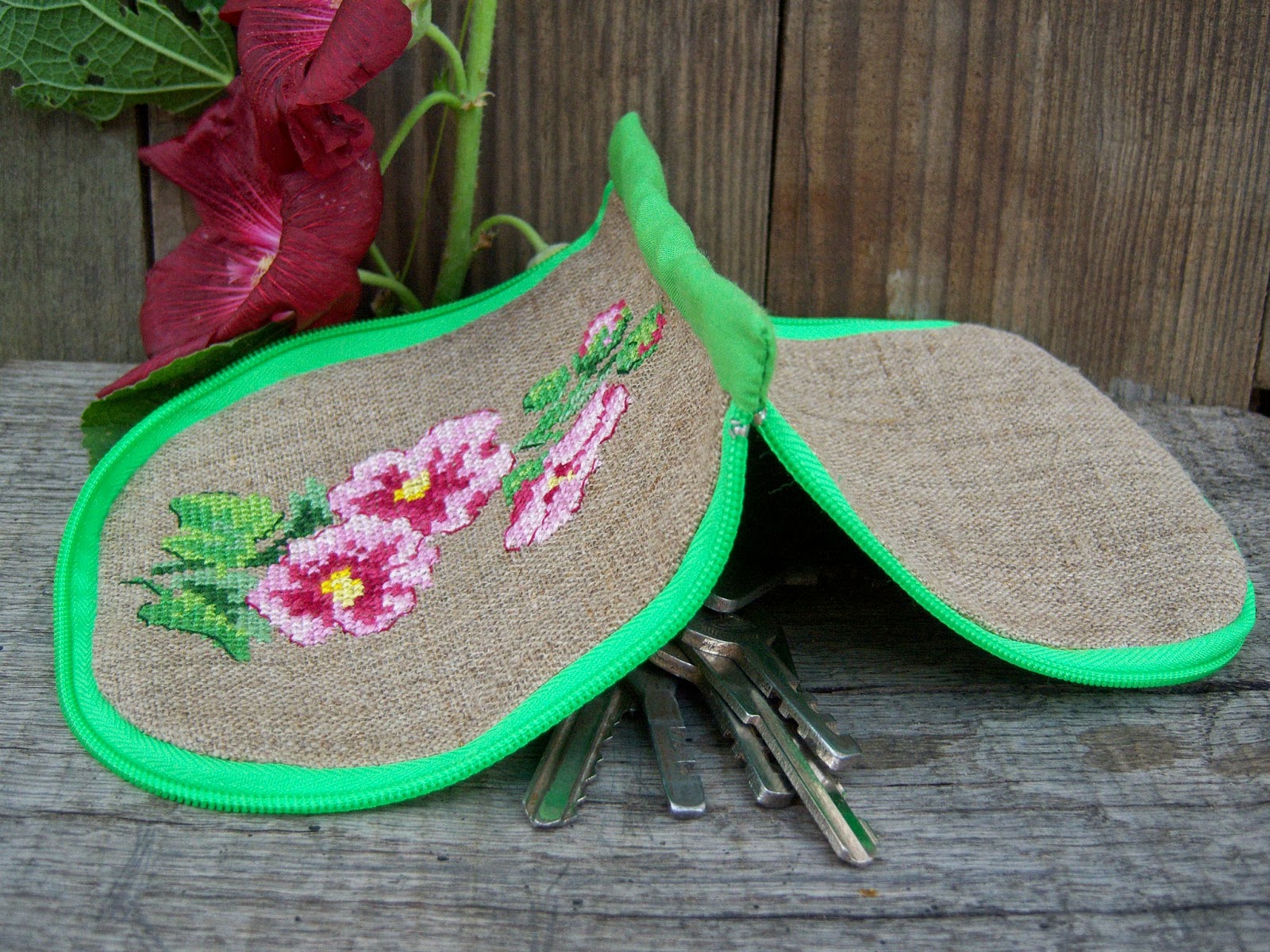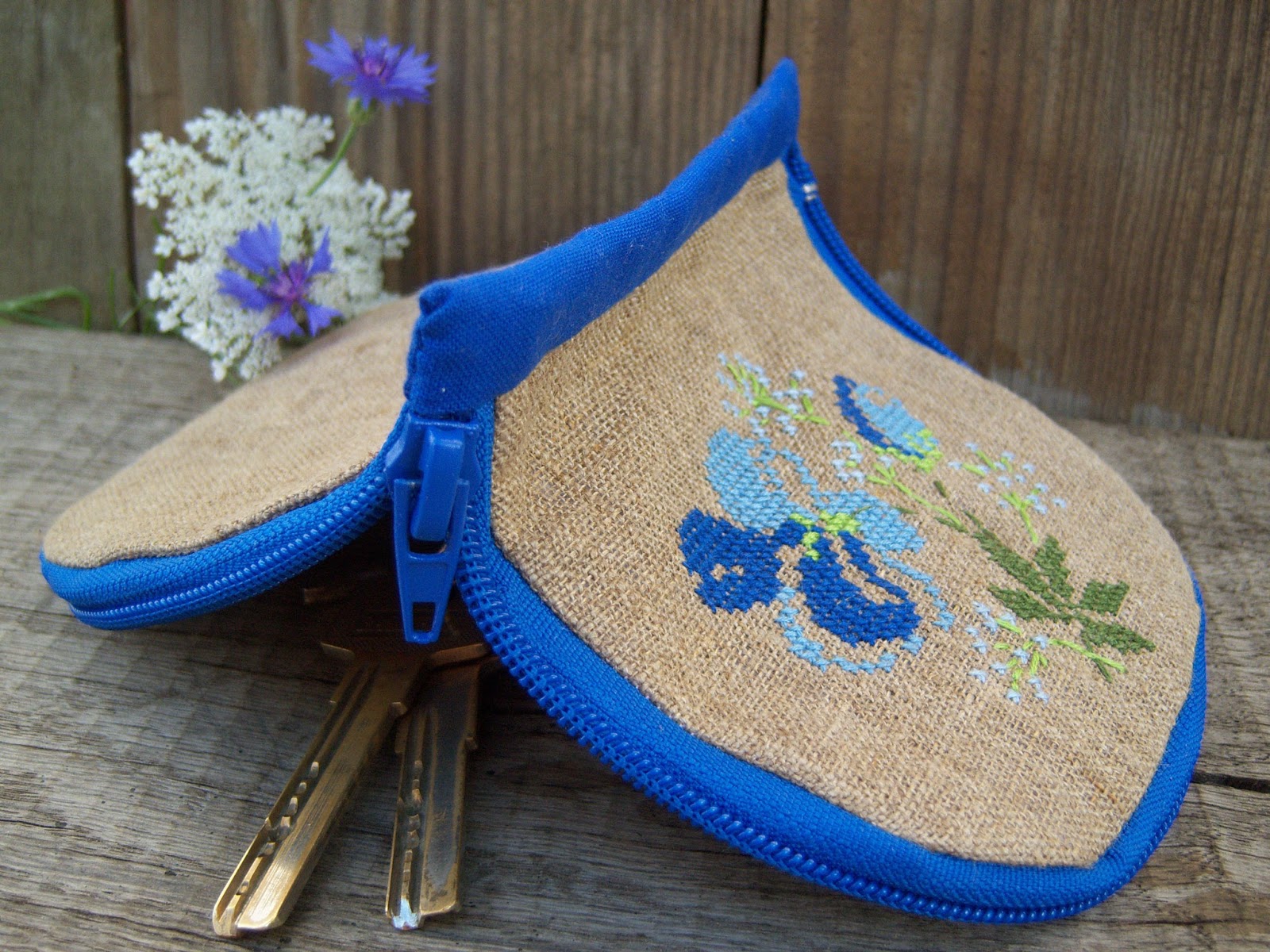 Матеріали: полотно, бавовна, замок, карабін, ручна вишивка хрестиком та гладдю