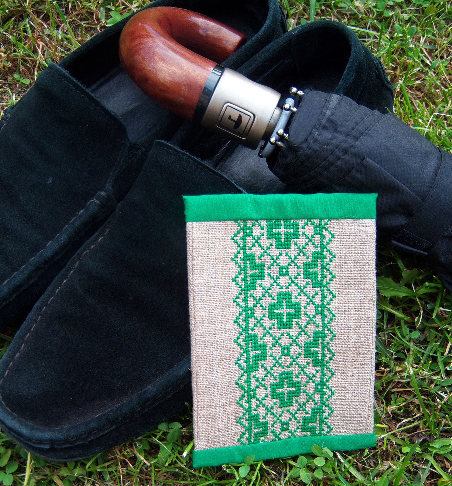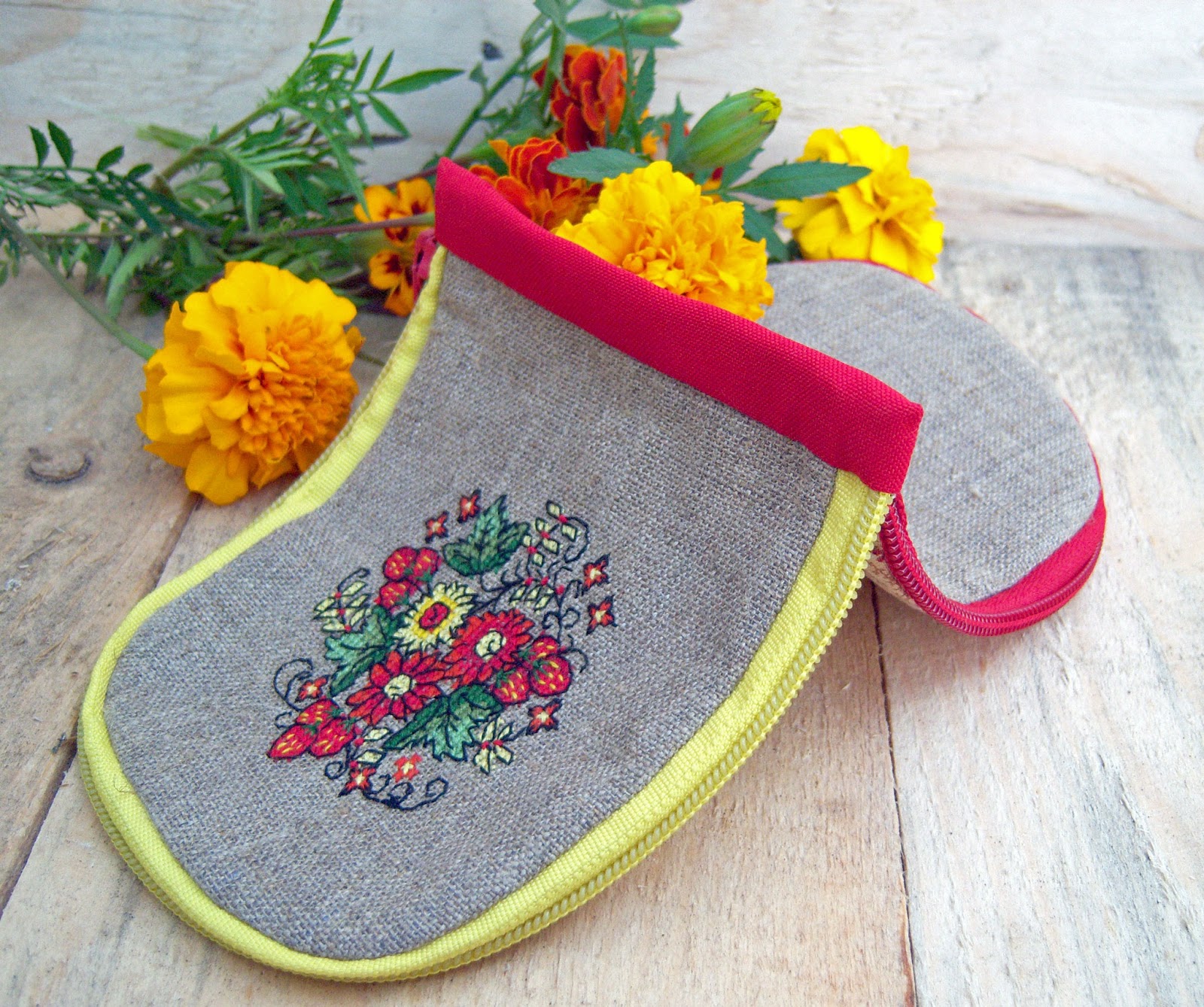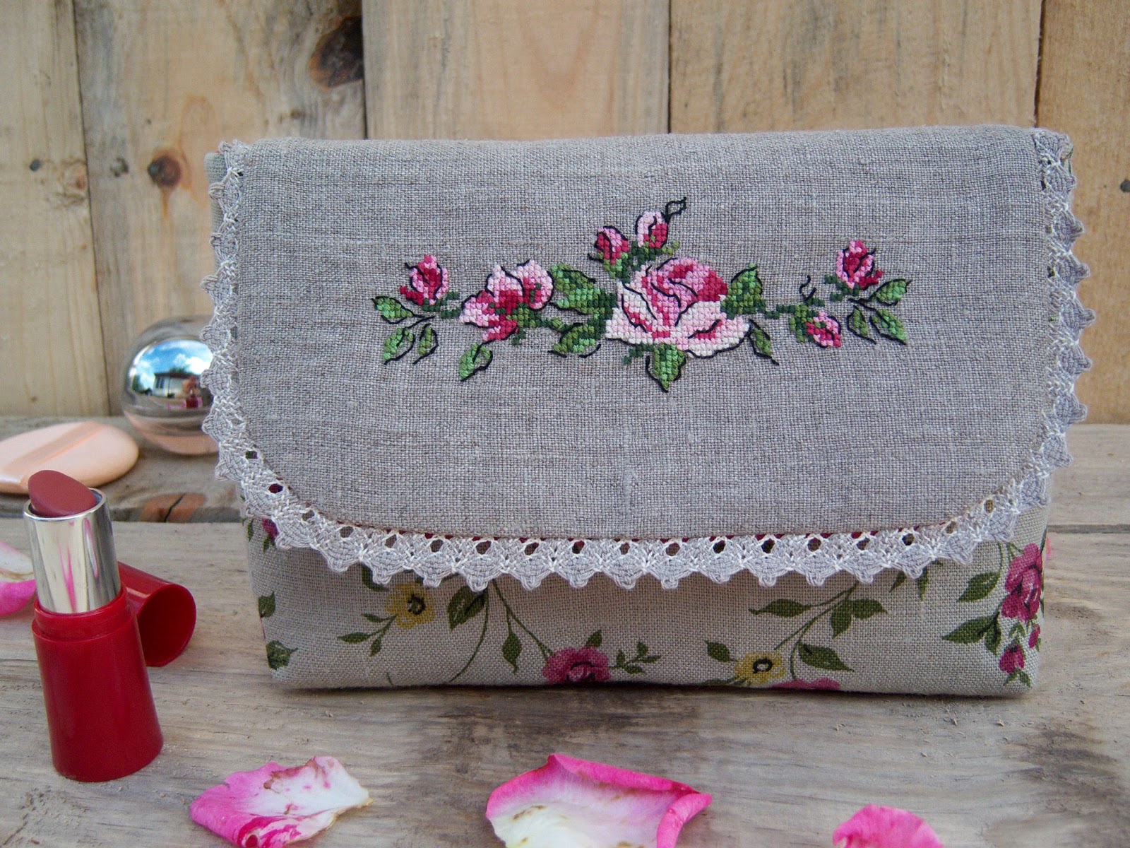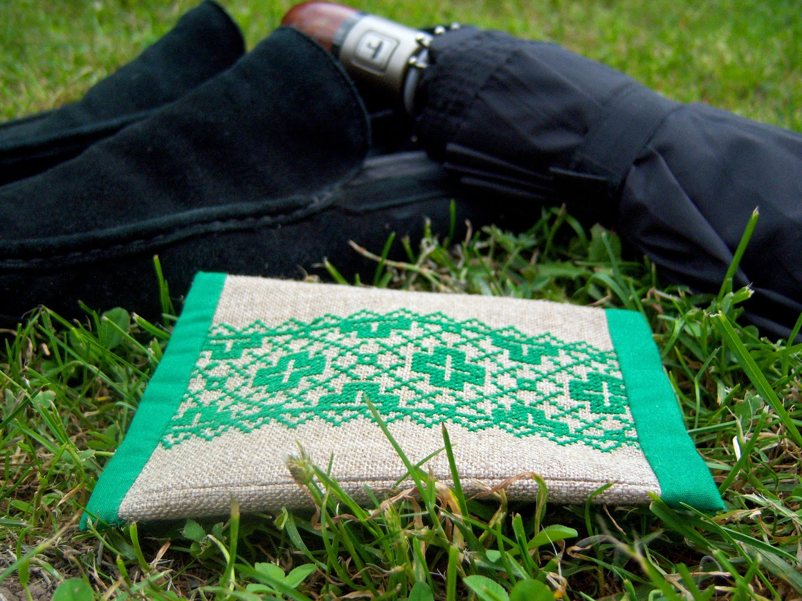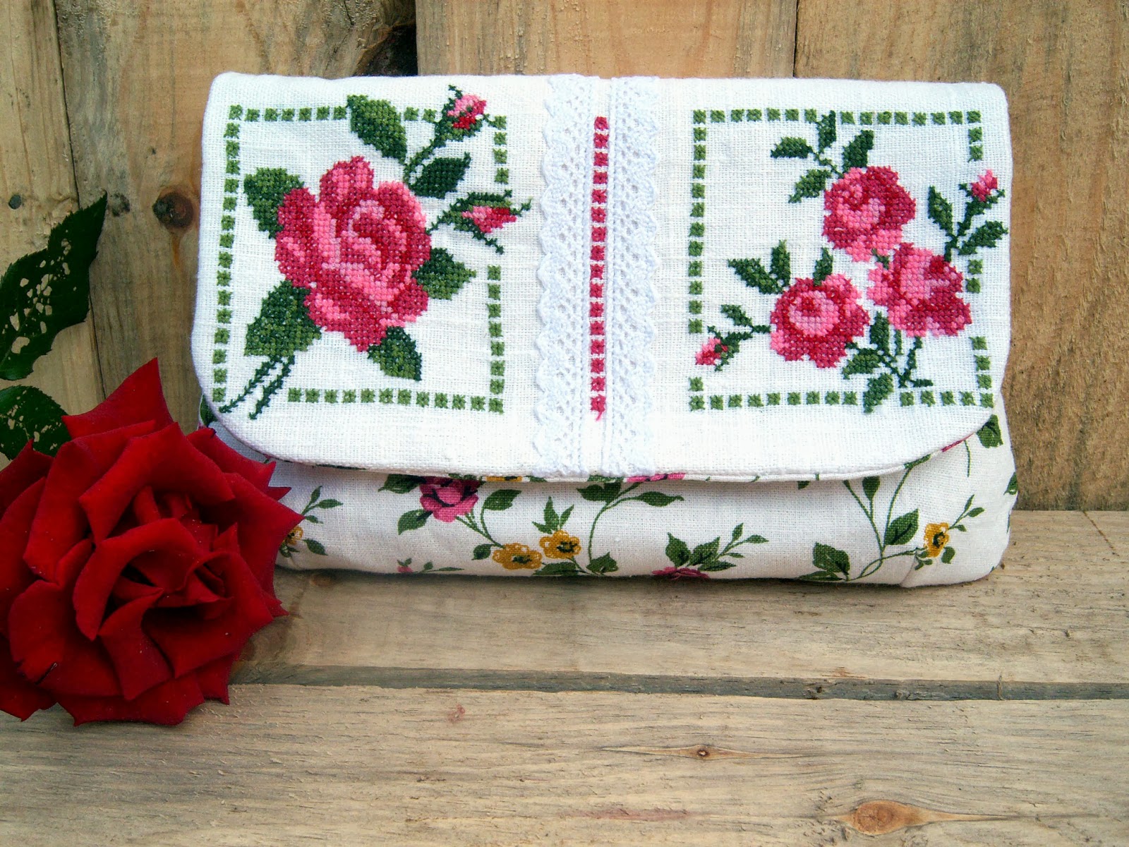 Матеріали: полотно, бавовна, замок, карабін, ручна вишивка хрестиком та гладдю