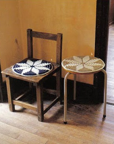 Round 2: 1ch, 1dc/sc in space of 1ch and h.tr/h.dc, 1ch, work shell in 1st tr/dc below, * 1ch, 1dc/sc in space of 3ch, 1 ch, work shell in 2nd tr/dc below; rep from *, 2 times, 1ch, sl.st in ch.