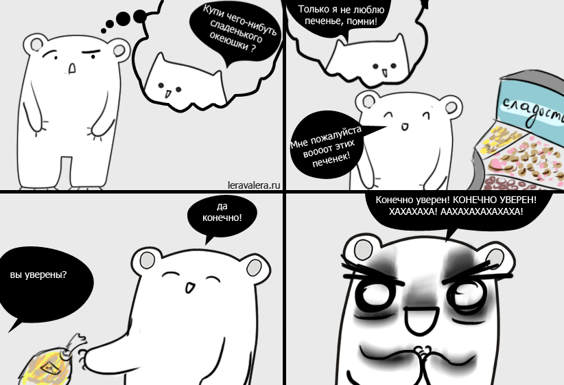 Приползает вчера с работы, приносит вкусняшки, а там целый килограмм ванильного мороженого!!!! Ну, каков подлец?! И взгляд такой хитрющий-хитрющий!