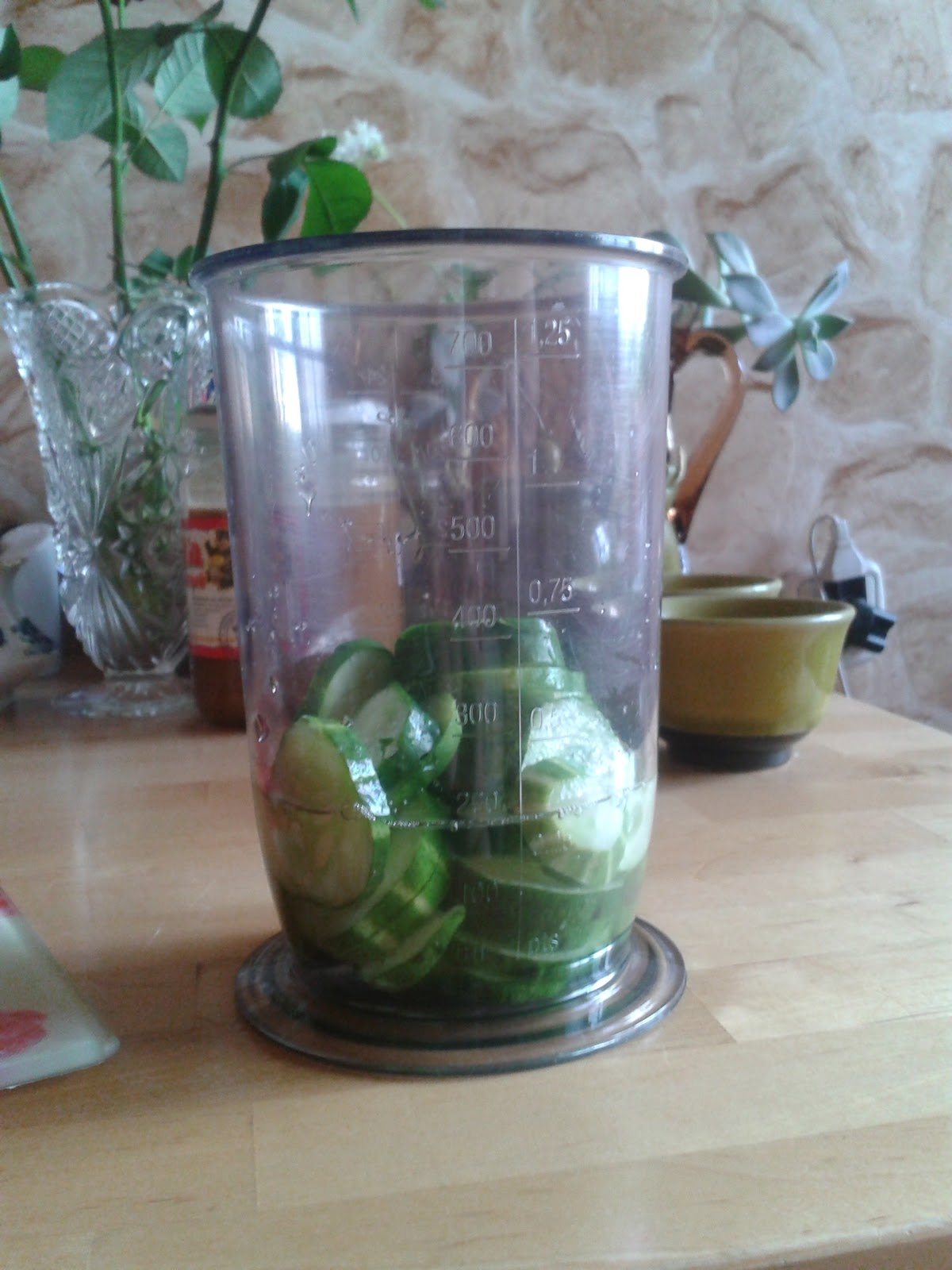 А чтобы перед всем этим кожу лучше увлажнять и снимать раздражения, вызываемые уже так горячо любимыми мною агрессивными факторами окружающей среды (*_* кто знает про мою работу поймет) я стала делать такую штуку из свежих огурцов: