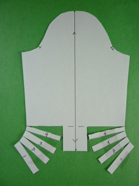 Как видно на картинке, этот рукав-полосочка имеет складочки-защипы по линии своего пришива к пройме (см. фото вверху, указано стрелочкой).