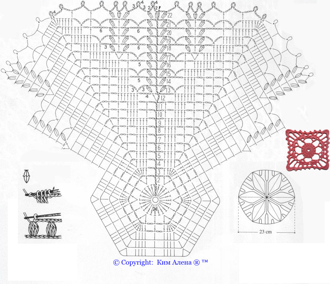 САЛФЕТКА ВЯЗАНАЯ ПО КРУГУ КРЮЧКОМ №23.