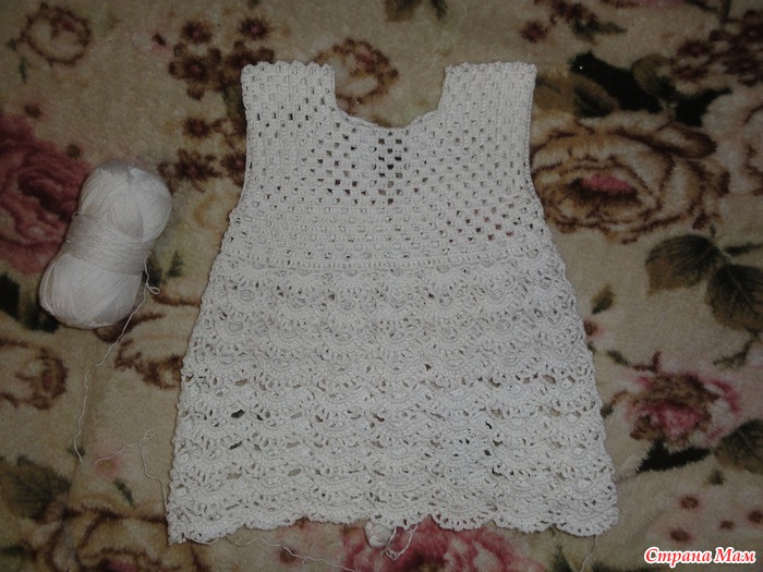 Для размера 6-9 мес. провязываем 4-й ажурный ряд как 1-й.