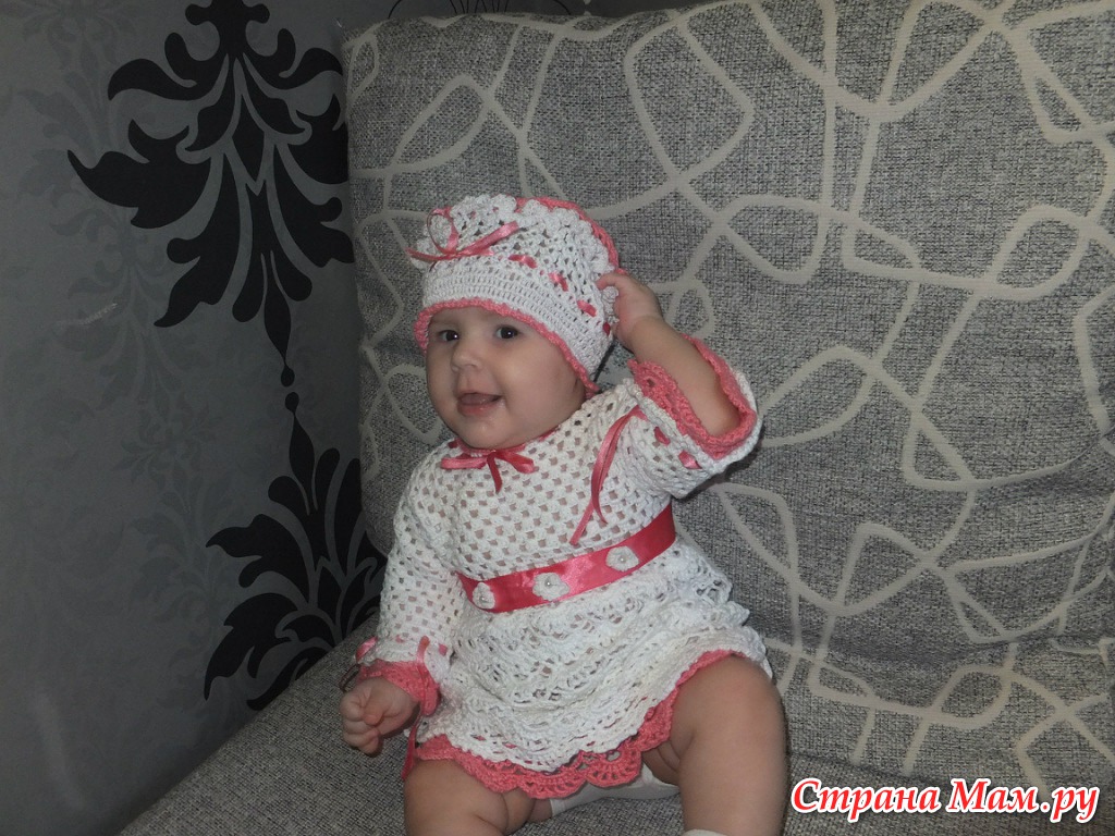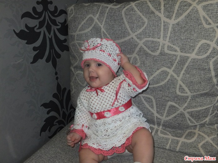 комплект для новорожденной малышки, нитки хлопок/акрил пр-ва китай, крючок 3 мм