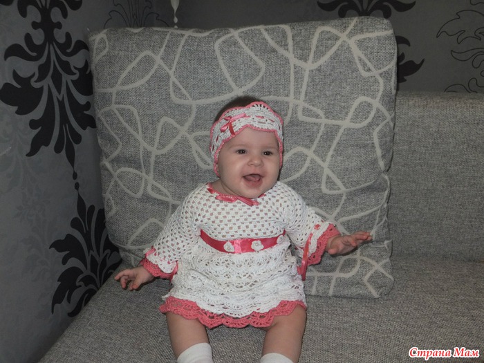 Для полноты комплекта связала берет и повязку. Готовая работа очень порадовала малышку и маму. А это самая большая похвала автору