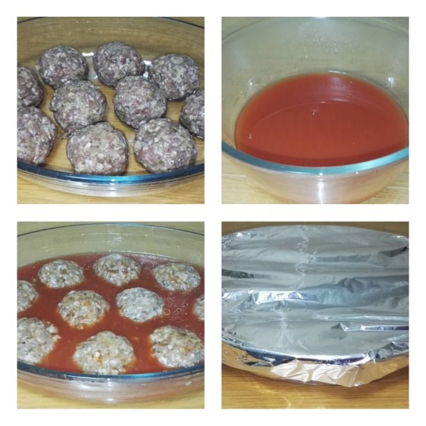 Форму для запекания смазываю растительным маслом. Мокрыми руками формирую тефтели и выкладываю их в форму. В 300 мл (1,5 стакана) горячей воды развожу томатную пасту. Слегка солю (я добавила еще 0,5 ч. л. сахара). Перемешиваю и заливаю полученным соусом тефтели. Накрываю форму фольгой и выпекаю в разогретой до 200 градусов духовке примерно 30 минут.