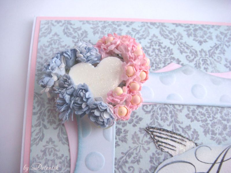 Тк карман является и наружной частью открытки, декорируем его соответственно титульного листа. Иногда можно сделать объемные элементы, чтобы титульный лист, как бы "цеплялся" за наш кармашек. В данном случае этого не потребовалось.