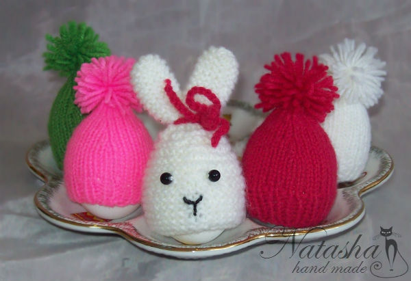 Любительницам вязания крючком в технике амигуруми хочу предложить связать для яиц теплые шапочки. Если вас данная идея не слишком привлекает), прилагаемые схемы вязания можно использовать для создания шапочек для игрушек или куколок амигуруми.