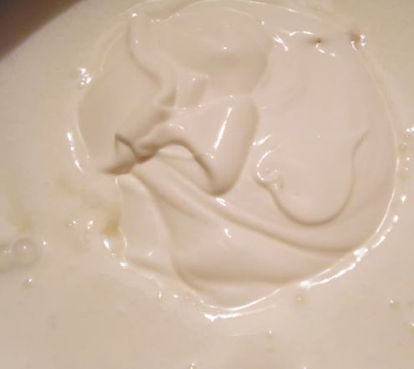 Шаг 2: Тем временем кефир взбить с сахаром, при помощи миксера или венчика, около 3 минут. Добавить сметану и еще раз взбить.