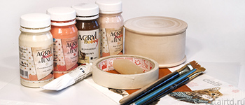 - мелочевка: кисточки, губка для шкурения, губки для тампонирования, бумажный скотч.