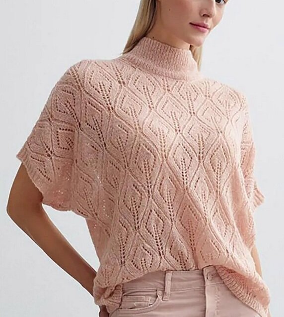 Джемпер размера плюс сайз с коротким цельновязанным рукавом