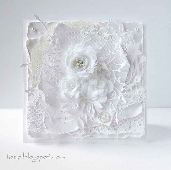 Отличная по композиции, очаровательная по сочетанию оттенков белого, не совсем обычная по элементам декора, эта открыточка приглянулась нам и своей трогательностью. А имя любимой бабушки, витиевато выложенное нитками, нас просто покорило - это что-то необыкновенное!!!! Анечка, благодарим тебя за эту ЛЮБОВЬ!