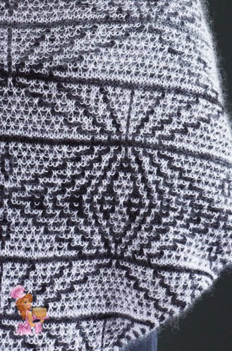 Отличая безрукавка с узором из ромбов, выполненными в технике жаккарда. В обрамлении рельефной резинки этот узор выглядит особенно эффектно.
