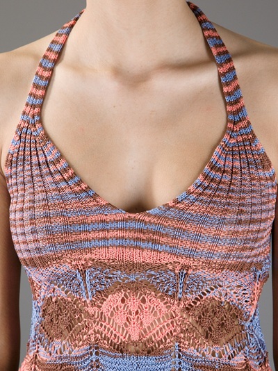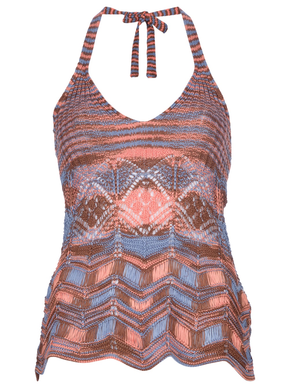 2. Halter neck top . Летний топик/маечка - горизонтальные полоски сверху переходят в ажурную центральную часть с ромбами,а затем в зигзаги-шевроны в нижней части..