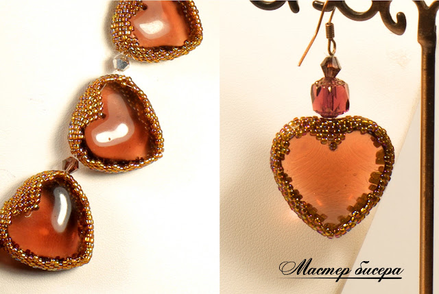 Овальную бусину обшиваем по периметру мелким хрусталем, сзади — 5 крупных бусин.