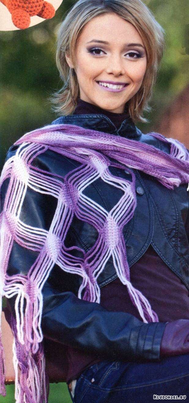 Крючком свяжите цепочку из в.п. желаемой длины шарфа, кратную 42 в. п. + 1 в.п. На ее основе вяжите узором по схеме. Провязав 35 рядов по схеме, закончите работу.