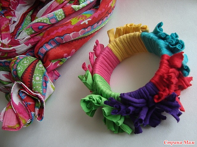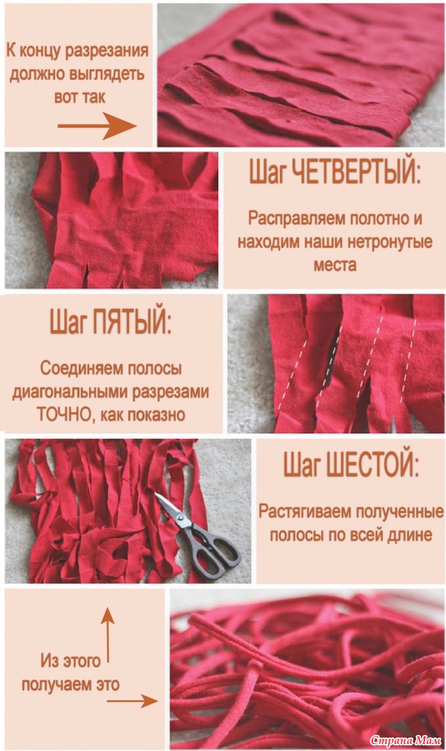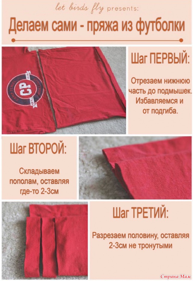 Если есть много ненужных разноцветных футболок, то таким вот способом можно сделать пряжу