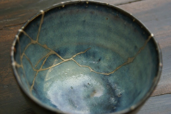 Необычное направление творчества получило название «Kintsugi» и широкое распространение среди молодежи. Суть нового вида искусства очень проста. За основу берется керамическая посуда, которую мастер бьет перед работой. После этого художник аккуратно собирает осколки и склеивает их специальным лаком, смешанным с золотым или серебряным песком.