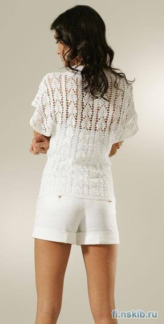 Если спереди надо выполнить застежку, то петли переда делим пополам и прибавляем к ним петли планки.
