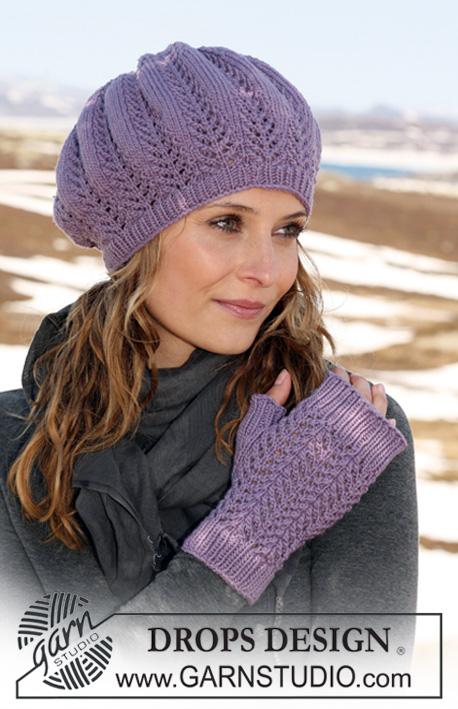 Берет и митенки связаны очень нежным, воздушным ажурным узором.
