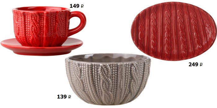 2) В этой же серии я нашла еще "вязаный" салатник, блюдо и небольшую чашку с блюдцем. Все в красных и серых тонах.