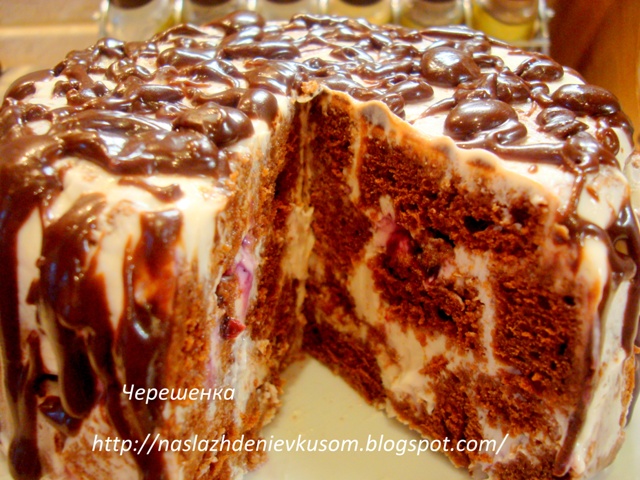 [показать]Кусочки великолепного шоколадного бисквита в обрамлении нежнейшего творожно-йогуртового крема, шоколадная глазурь и нотки смородинового конфитюра… Что может быть вкуснее?!!! Как всегда, писала дольше, чем готовила;)))