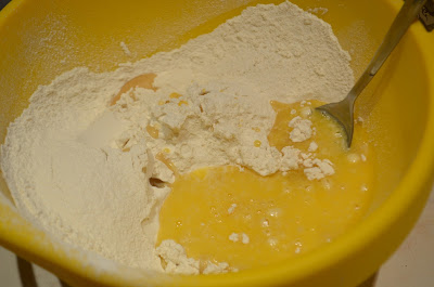2) Для теста муку просеять, добавить соль. Ввести растопленное сливочное масло и растительное. При постоянном помешивании влить 0,3 стакана горячей воды . Из теста скатать шар, отложить его на 15 минут