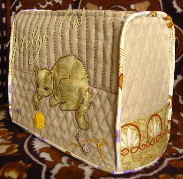 Для чехла нам понадобится ткань для верха, ткань для подклада, синтепон, ткань для отделки боковых швов и низа. У меня это ткани для пэчворка, белорусский лён, белая и жёлтая бязь.