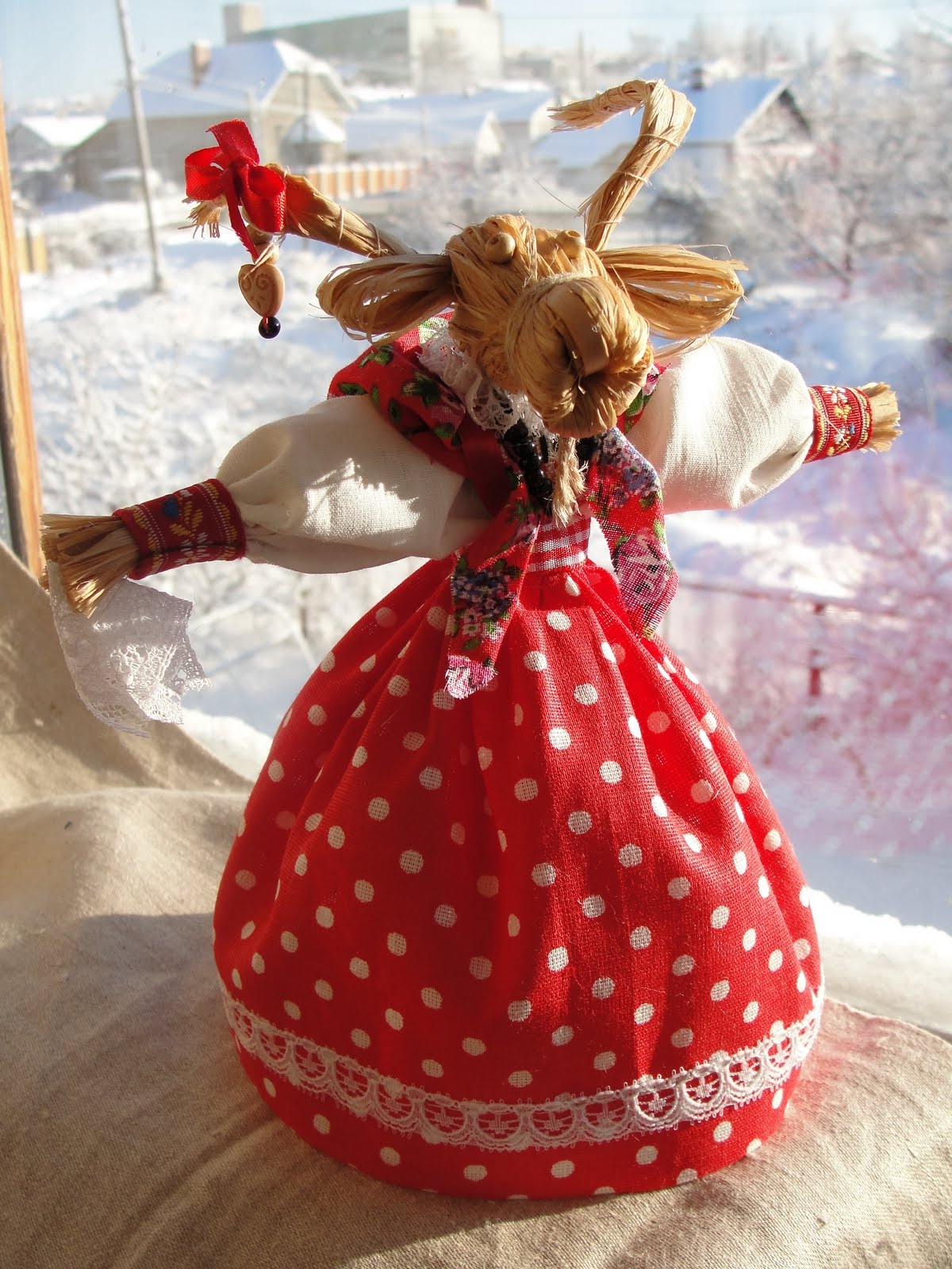 [показать]В народе говорят «Муж голова, а жена шея. Куда шея повернет, туда голова и смотреть будет». Видимо поэтому в кукле На удачное замужество основной акцент делается на шею.