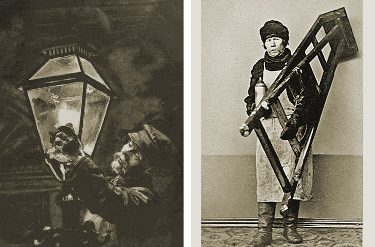 В 1718 году Петр I издал указ об уличном освещении города Санкт-Петербурга. Сказано — сделано. Набрали специальных людей, каждый из которых обслуживал 15 светильников: зажигал, гасил, чистил, заправлял, менял прогоревший фитиль.