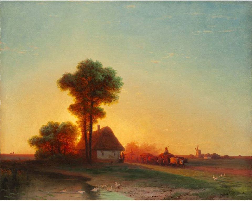 «Украинский пейзаж с чумаками при луне». 1869. Государственная Третьяковская галерея, Москва. Иван Константинович Айвазовский. "