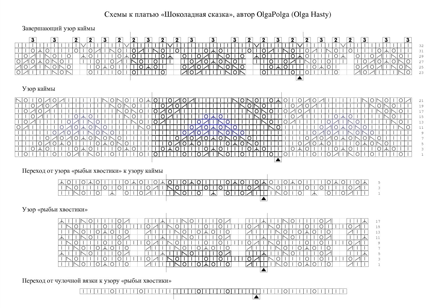 Юбку и волан вяжем по схеме 2 начиная с третьего ряда. Для менее расклешенного платья я