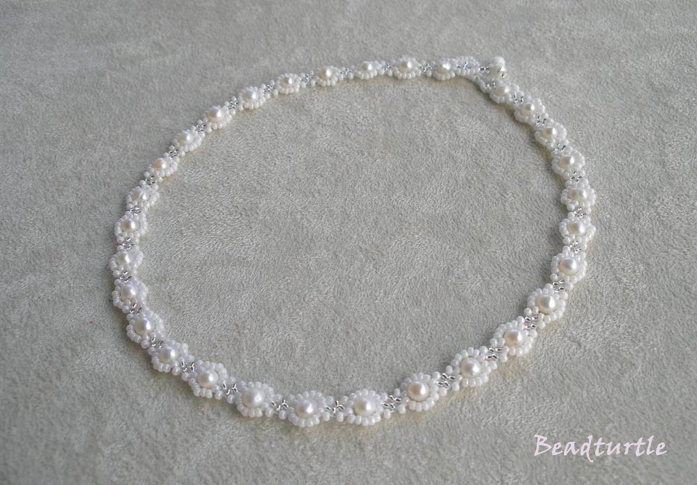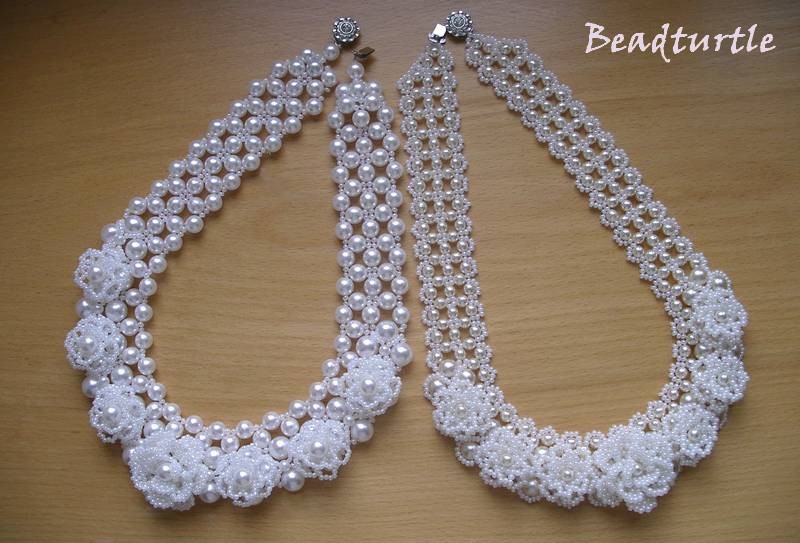 Колье "К юбилею", по схеме Ольги Котельниковой (ОльгаК на бисеринфо) -бусины пластиковые "под жемчуг", бисер тохо