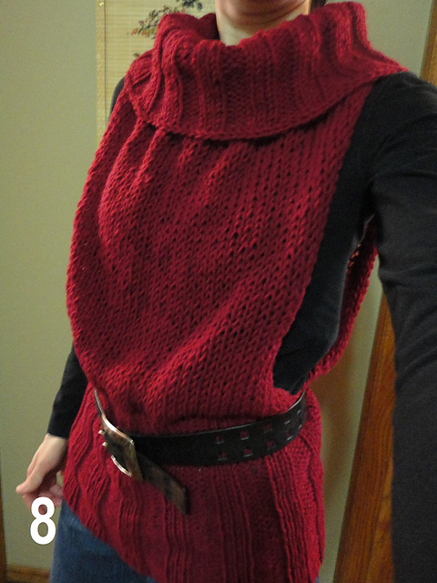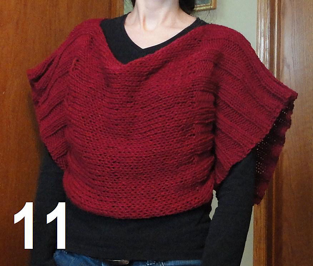 Для формирования воротника шалька вязать укороченными рядами, начиная с каждого 10-го ряда: *начиная с лиц.р. на правой полочке (=середина переда) вязать 1 ряд лиц.п. на 16 п. (= петли планки), повернуть вязание и вязать лиц.п. до конца ряда, повернуть вязание, повернуть вязание, вязать 1 ряд как раньше (платочной вязкой для планки и узором для остальных петель) на всех петлях, повернуть вязание, вязать 16 петель левой планки, повернуть вязание и вязать до конца ряда. Повторять от * в каждом 10-ом ряду.