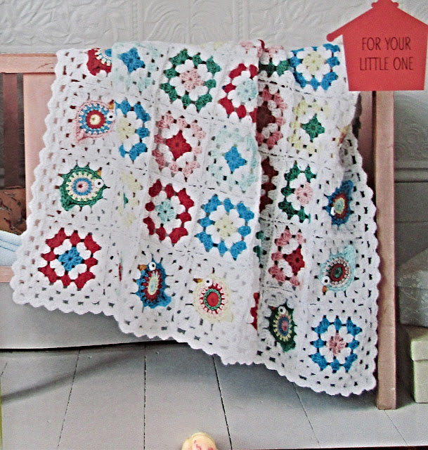 В простые бабушкины квадраты, могут легко внедрятся забавные мотивчики- с птичками, рыбками, или морскими ежами.