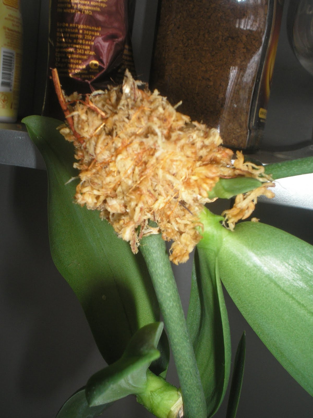 1. непосредственно сама орхидея, которая в результате определенных условий, вместо бутонов выдала детки, но укоренение не происходит, а наша задача заставить орхидею укоренять своих деток.