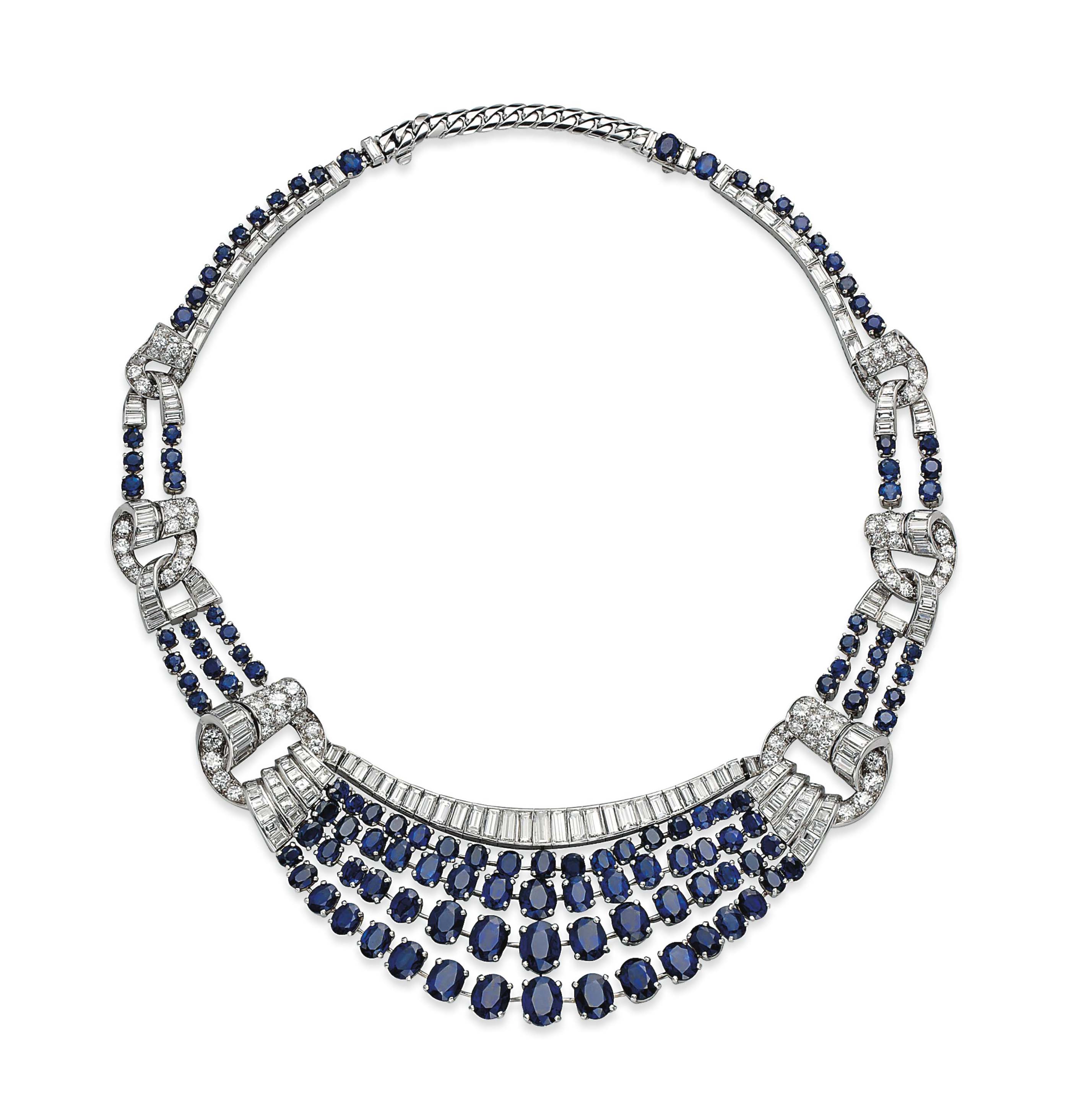 КОЛЬЕ С САПФИРОМ И БРИЛЛИАНТАМИ
