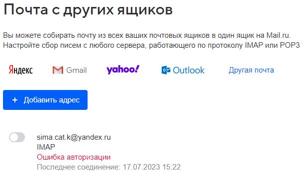 Привет, Олечка. Да, видимо, придется уйти с мэйла. Вчера подключила яндекс, все заработало. Но у меня на мэйле, кроме лиру, куча всяких сайтов, соцсети, магазины. Создавать отдельную почту для лиру... Хотела привязать ее к мэйлу, папка на мэйле появилась, но почта туда не идет. Сколько ж тут проблем и заморочек!!!)))