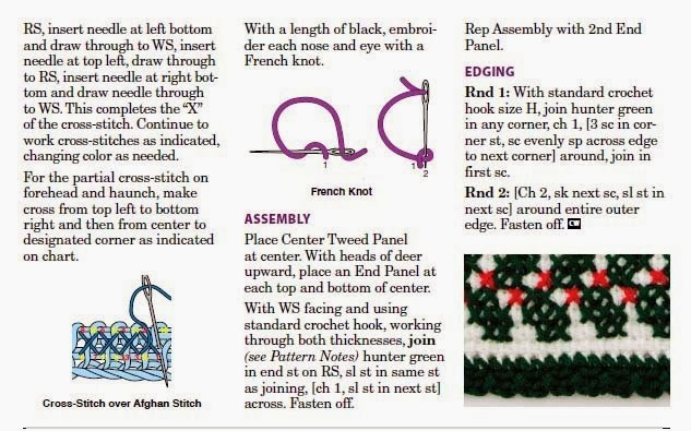 Вам потребуется: 140 г акриловой пряжи темного сине-зеленого цвета, 10 г пряжи бордового цвета и немного пряжи белого цвета. Крючок № 2,5 и игла с тупым, концом для вышивания.